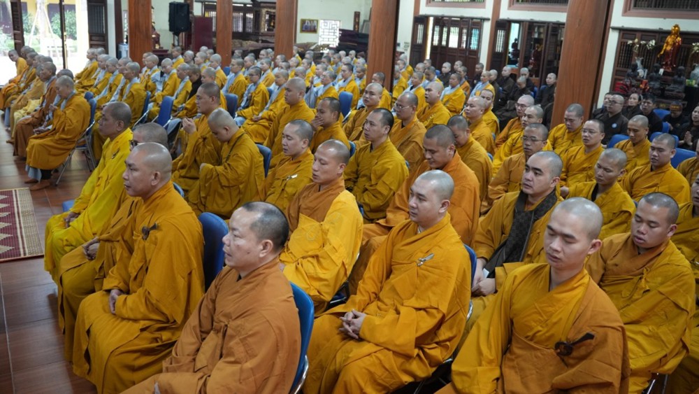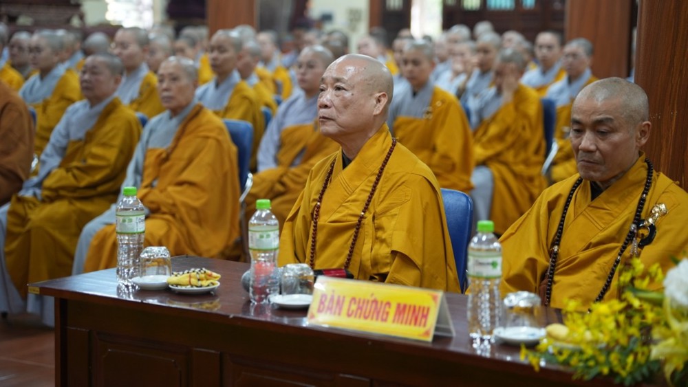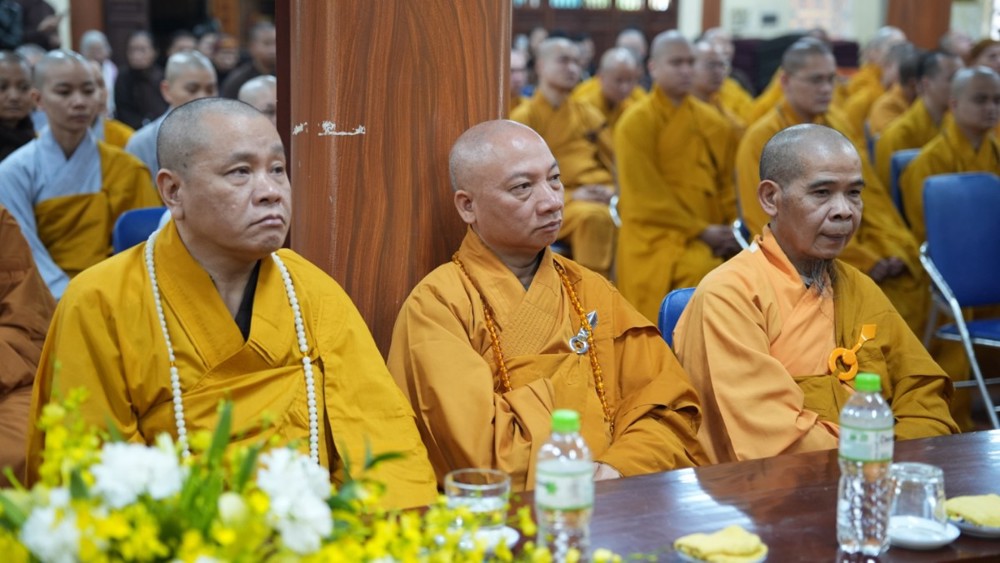 Quang lâm và tham dự buổi lễ có Hòa thượng Thích Bảo Nghiêm – Phó Chủ tịch HĐTS, Trưởng BTS GHPGVN TP. Hà Nội; Thượng tọa Thích Minh Trí - Ủy viên HĐTS, Phó trưởng BTS GHPGVN TP. Hà Nội; Thượng tọa Thích Tiến Đạt - Viện chủ chùa Đại Từ Ân; Thượng tọa Thích Minh Tín – Ủy viên HĐTS, Phó trưởng BTS GHPGVN TP. Hà Nội; Thượng tọa Thích Đạo Phong - Ủy viên HĐTS, Phó trưởng ban kiêm Chánh Thư ký BTS GHPGVN TP. Hà Nội; Thượng tọa Thích Chiếu Tuệ - Ủy viên HĐTS, Trưởng Ban Hoằng pháp GHPGVN TP. Hà Nội; Thượng tọa Thích Tiến Thông - Ủy viên HĐTS, Phó trưởng Ban Hướng dẫn Phật tử TW GHPGVN, Phó trưởng BTS GHPGVN TP. Hà Nội; Ni trưởng Thích Đàm Thành - Ủy viên HĐTS, Trưởng Phân ban Ni giới GHPGVN TP. Hà Nội; cùng Chư tôn đức Ban Trị sự GHPGVN TP. Hà Nội, Chư tôn đức Ban Giám hiệu, đại diện Văn phòng nhà trường, Tăng Ni sinh Trường Trung cấp Phật học TP. Hà Nội và đông đảo Phật tử gần xa đồng về tham dự trong không khí trang nghiêm, thành kính.
