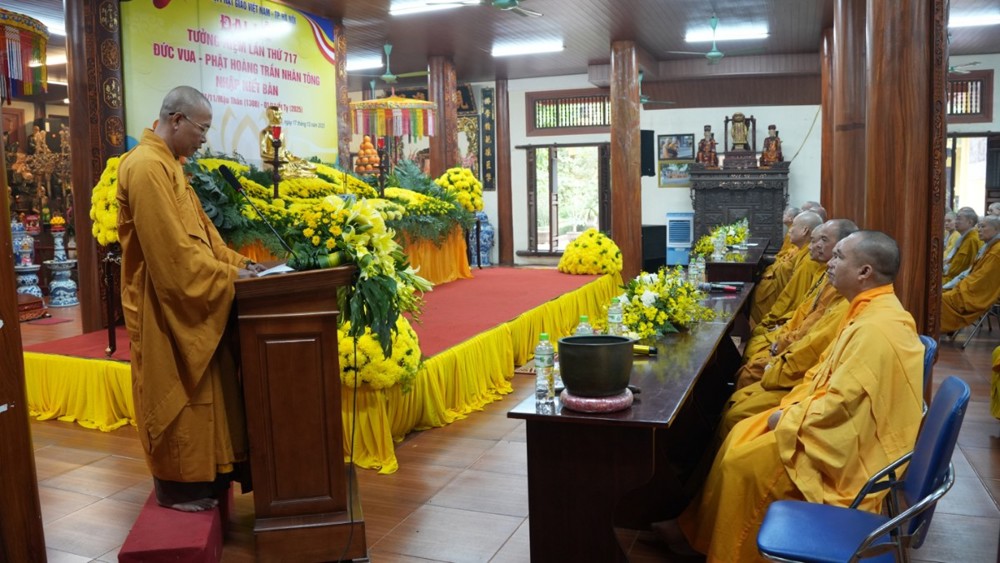 Trong bài diễn văn tưởng niệm, Hòa thượng Thích Bảo Nghiêm bày tỏ lòng tri ân sâu sắc đối với công đức to lớn của Phật Hoàng Trần Nhân Tông với dân tộc và Phật giáo Việt Nam; đồng thời khái quát bối cảnh lịch sử thời Trần, công lao trị quốc an dân của Đức Vua khi còn tại vị, cũng như quá trình Ngài xả bỏ ngai vàng, xuất gia tu hành, sáng lập Thiền phái Trúc Lâm Yên Tử – dòng thiền mang đậm bản sắc Phật giáo Việt Nam, trở thành biểu tượng sáng ngời của tinh thần nhập thế, hộ quốc an dân. Hòa thượng nguyện noi theo tấm gương của Phật Tổ, lấy đó làm ngọn đèn soi sáng cho chư tôn đức Tăng Ni, dốc lòng phụng sự cho Phật giáo hôm nay và mai sau.