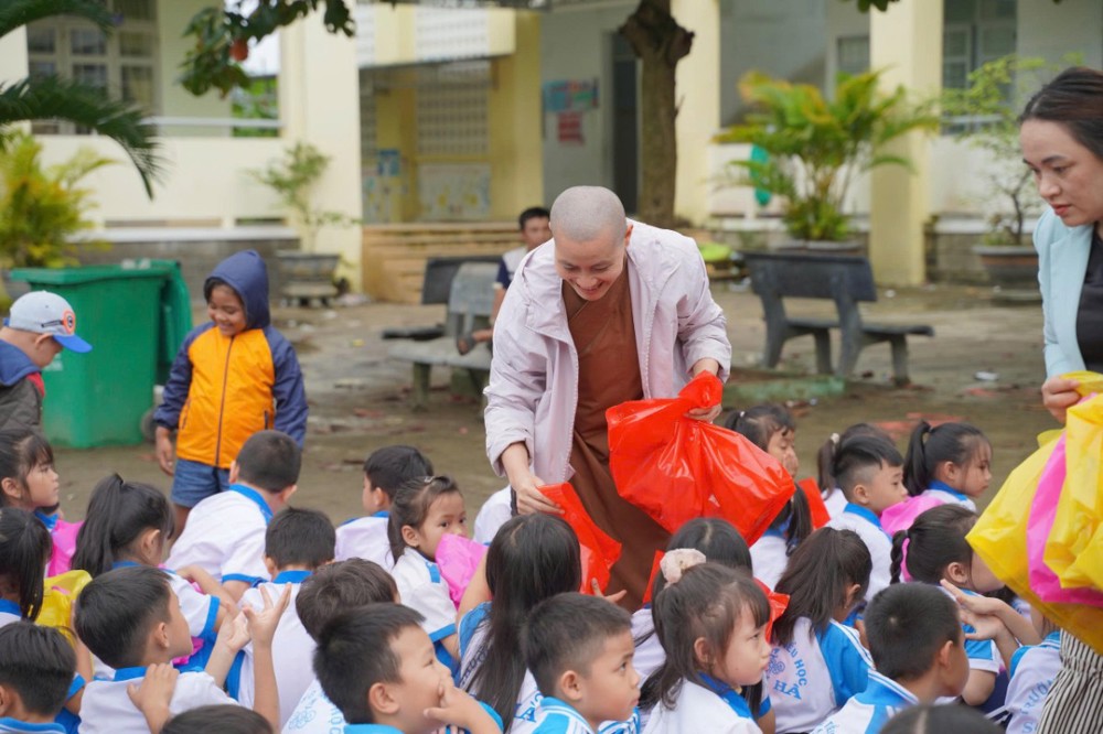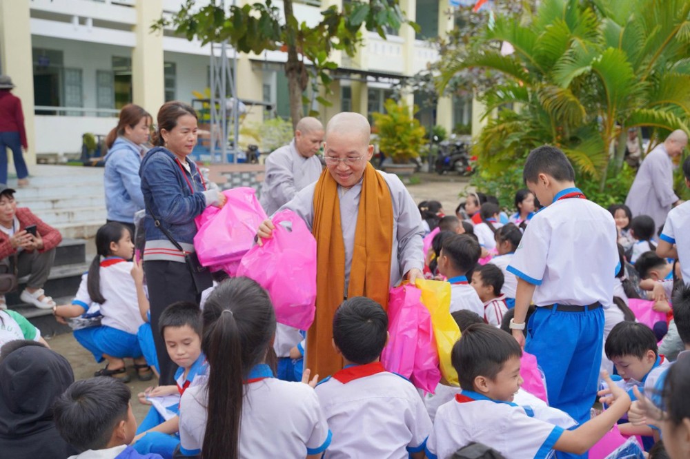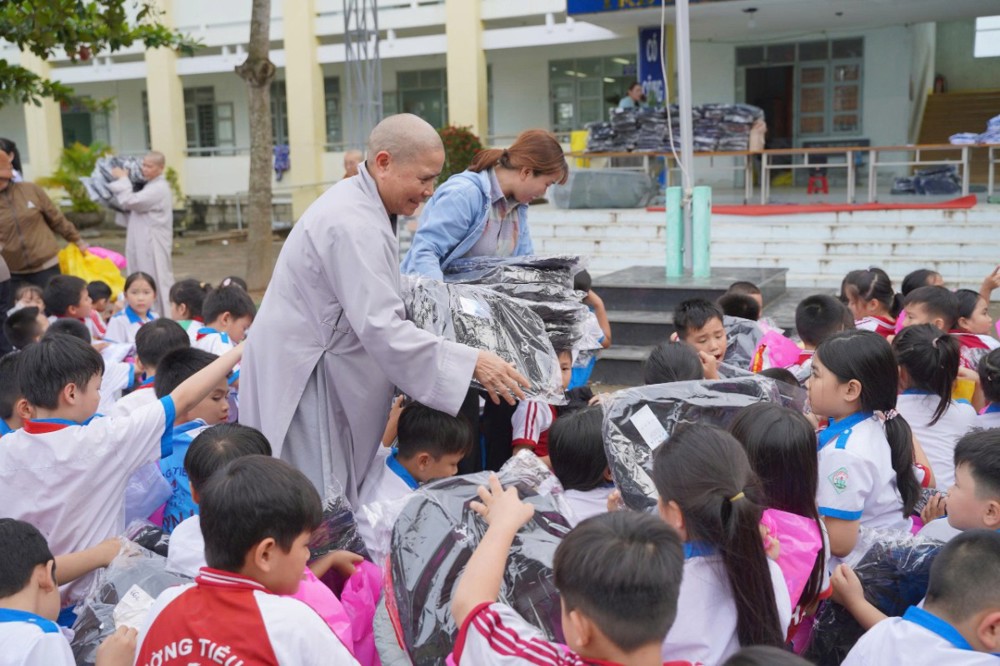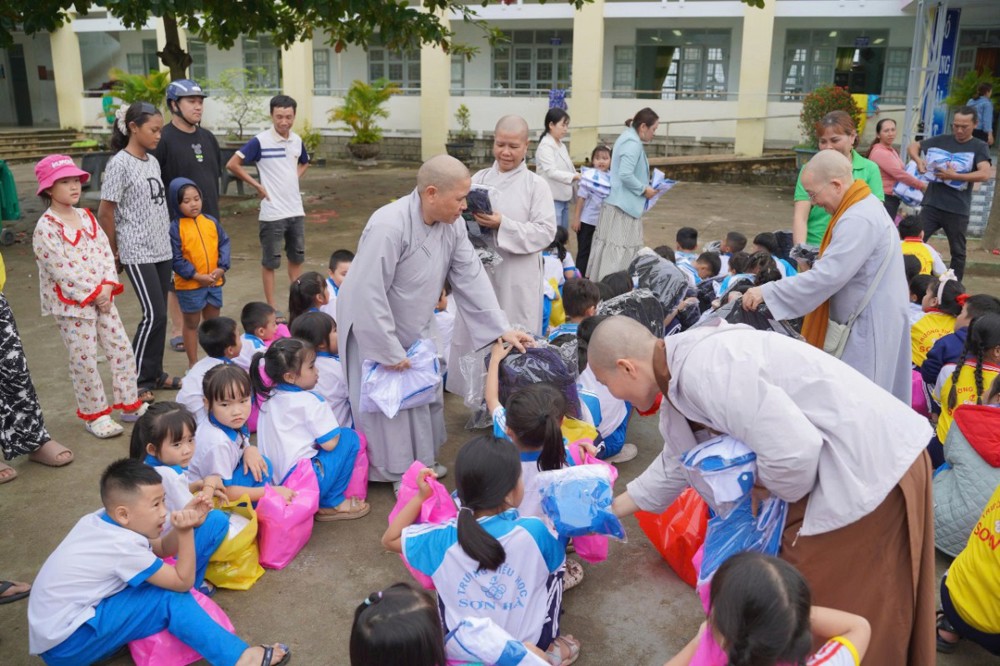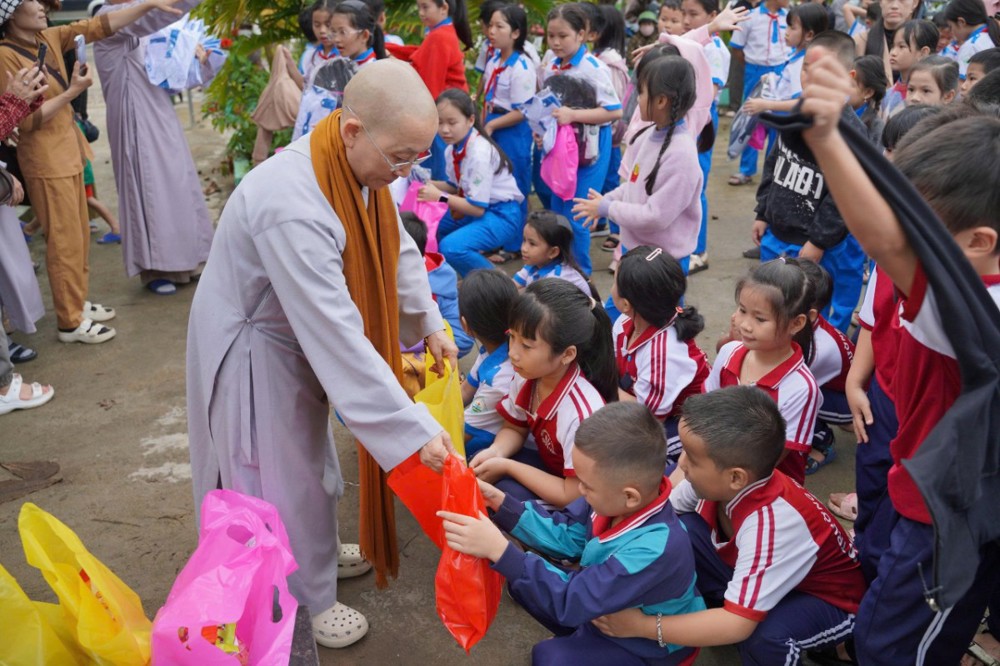Tại buổi lễ, Ni sư Thích Nữ Như Hiền đã gửi đến bà con và các em học sinh địa phương những lời phát biểu chân tình và sâu lắng. Ni sư bày tỏ sự cảm thông sâu sắc trước những mất mát, thiệt hại mà người dân nơi đây phải gánh chịu sau thiên tai; đồng thời động viên mọi người giữ vững niềm tin, nương tựa nhau mà vượt qua giai đoạn đầy thử thách. Ni sư cũng dành sự quan tâm đặc biệt đến các em học sinh – những mầm non đang chịu ảnh hưởng không nhỏ từ hoàn cảnh khó khăn của gia đình và địa phương.