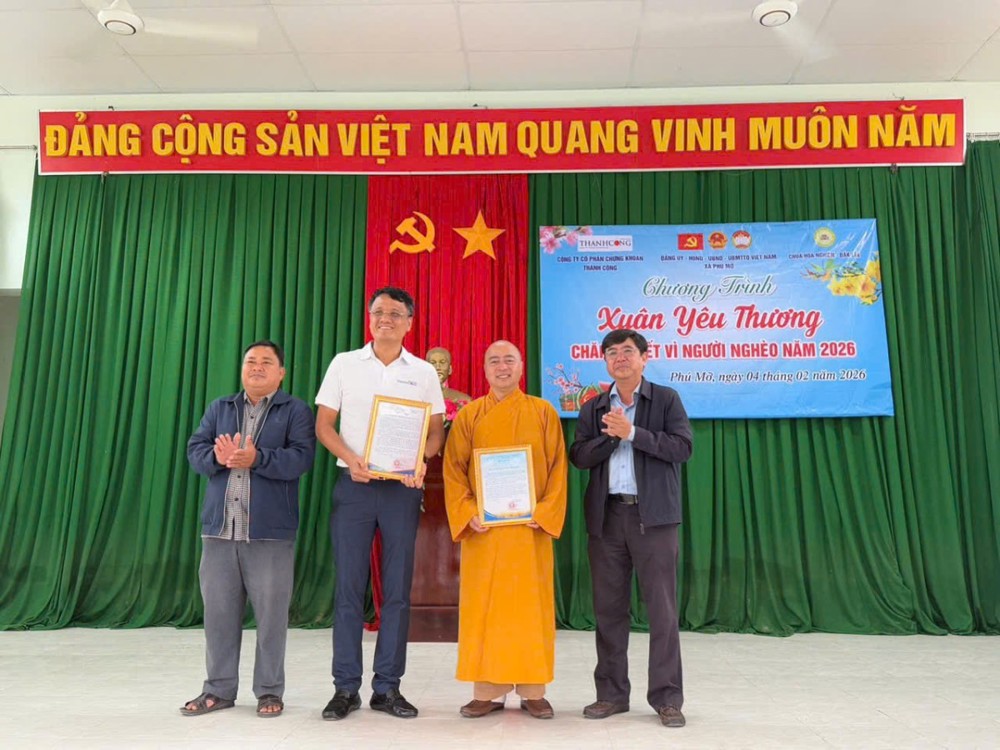 Dịp này, Bí thư Đảng ủy xã Phú Mỡ cũng bày tỏ sự trân trọng và gửi lời cảm ơn sâu sắc đến chùa Hoa Nghiêm cùng Công ty Cổ phần Chứng khoán Thành Công đã quan tâm, đồng hành cùng địa phương trong công tác chăm lo Tết cho người nghèo.