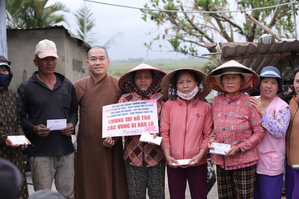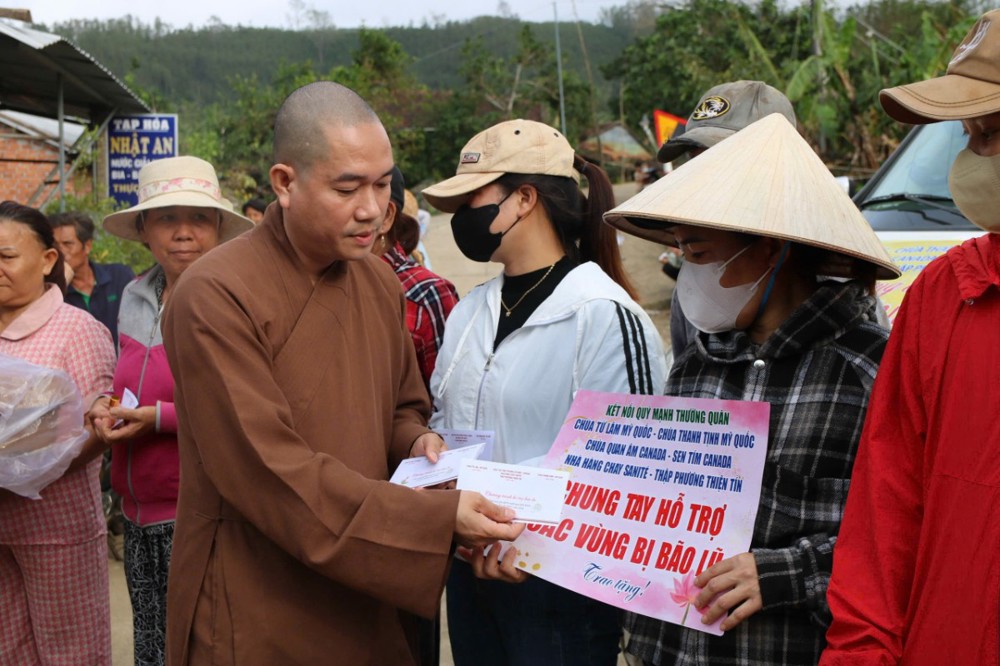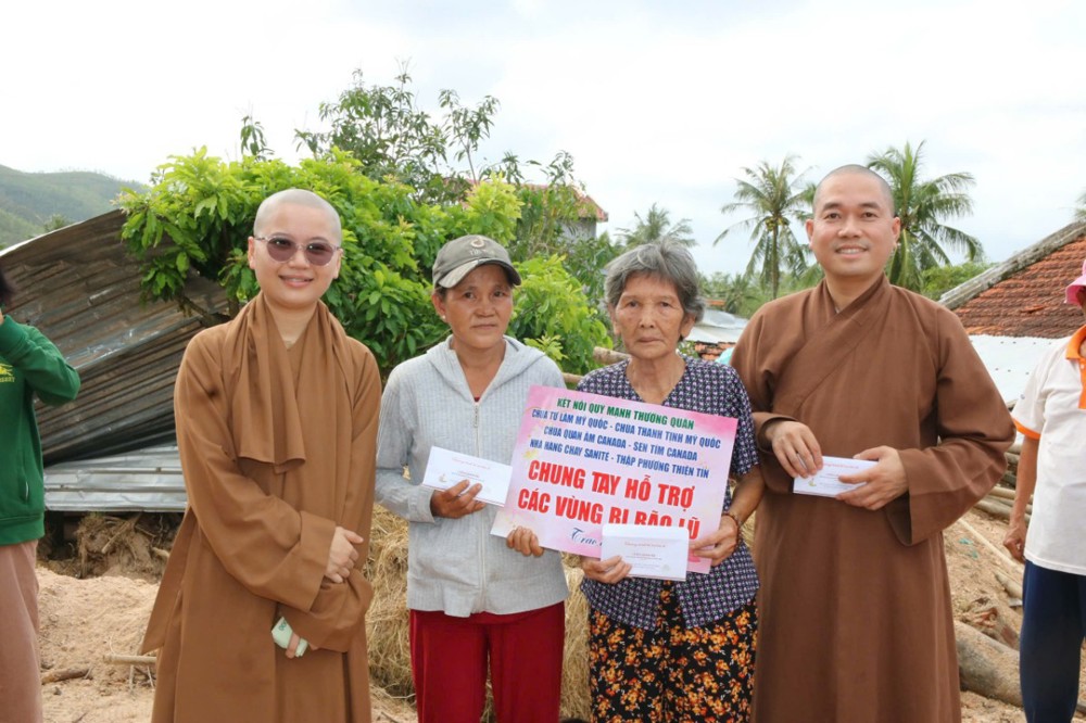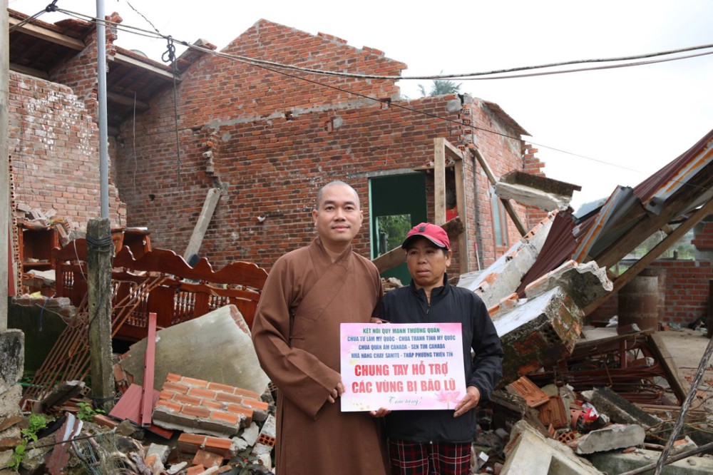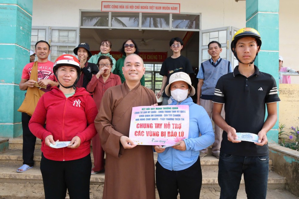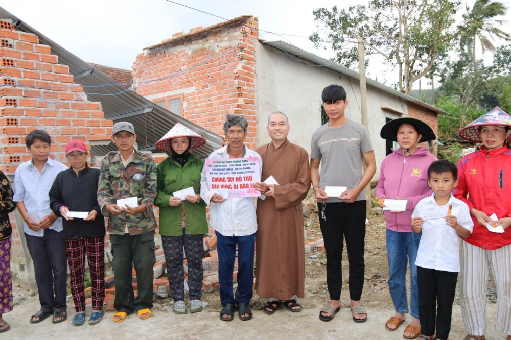 Bên cạnh đó, đoàn cũng đã đến thăm, cúng dường và hỗ trợ một số tự viện tại Phú Yên và Bình Định – những cơ sở tâm linh vừa chịu ảnh hưởng trực tiếp bởi mưa lũ, vừa là điểm tựa tinh thần quan trọng cho người dân trong mùa thiên tai. Qua đó, thể hiện tinh thần hộ trì Tam Bảo, gắn bó hài hòa giữa đạo pháp và đời sống, đặc biệt trong những lúc gian khó, hoạn nạn.