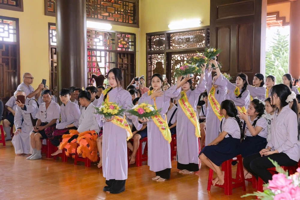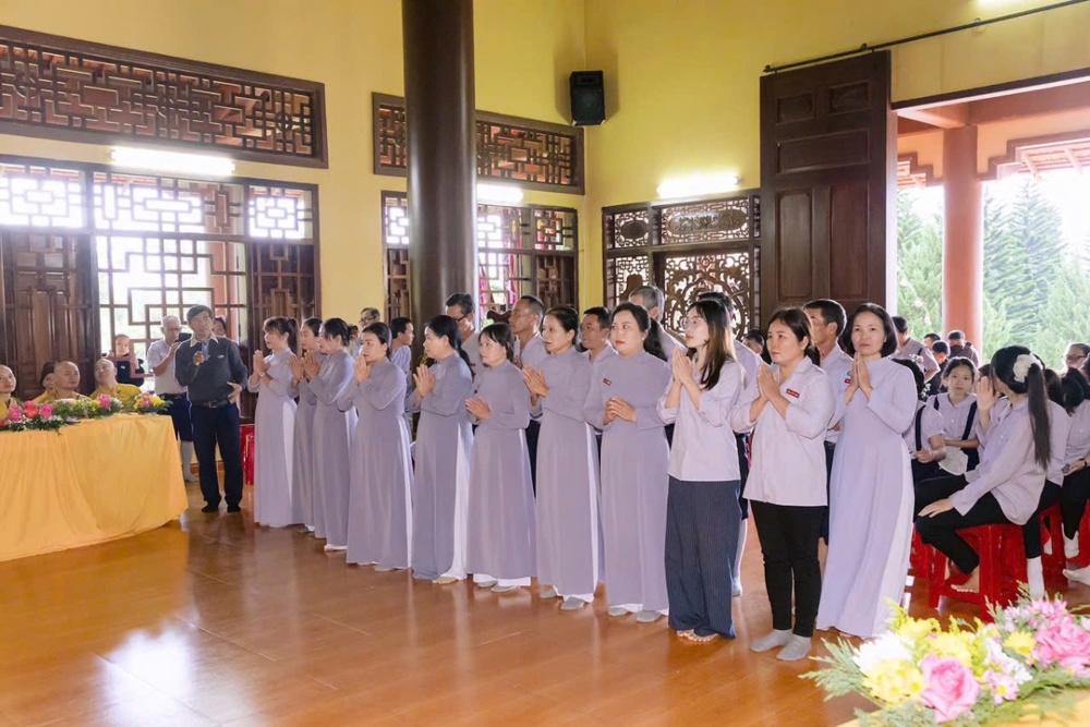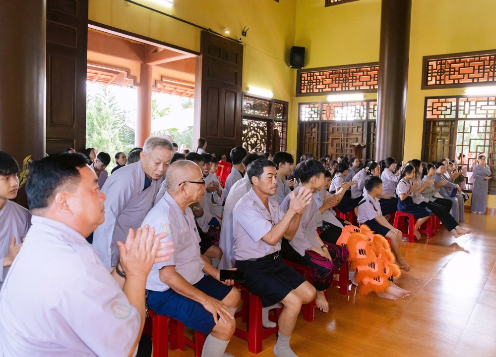 Chứng minh buổi lễ có TT. Thích Đạo Ứng, trụ trì thiền viện Trúc lâm Từ Giác, trưởng Ban tổ chức; TT. Thích Thông Trụ, trụ trì thiền viện Vạn Đức; NS. Thích Nữ Trí Minh, trụ trì thiền viện Trúc Lâm Nguyên Minh, chư Tôn đức Tăng Ni các chùa, thiền viện, tịnh xá lân cận cùng đông đảo quý Phật tử về tham dự.