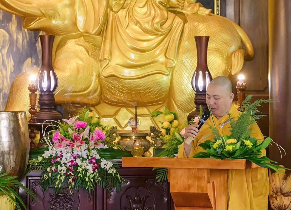 Mở đầu buổi lễ, TT. Thích Đạo Ứng tuyên đọc sơ lược tiểu sử Phật hoàng Trần Nhân Tông, sơ tổ Thiền phái Trúc Lâm.