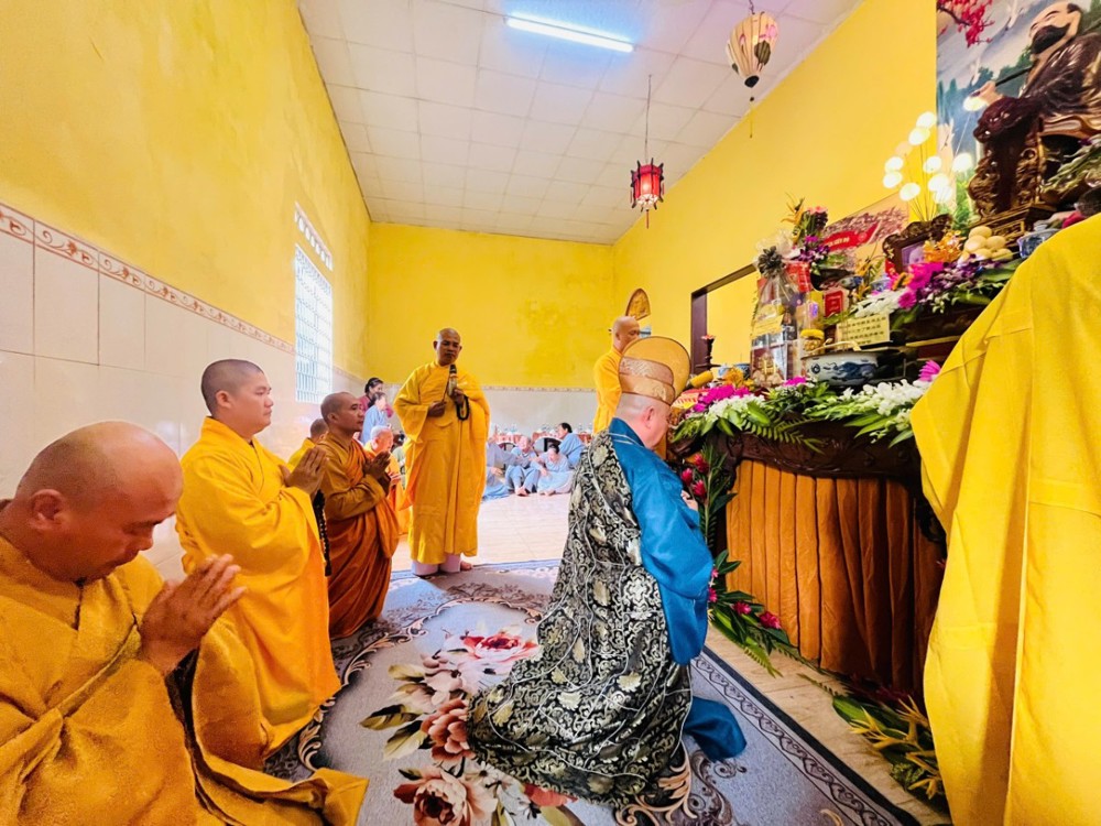 Tiếp đó, Bổn tự cung thỉnh HT.Thích Giác Thanh cùng chư Tôn đức Ban Kinh sư quang lâm về Đại hùng bảo điện tham lễ Tam Bảo tiến hành nghi thức cúng ngọ. Sau đó, TT. Thích Quảng Huy - Trưởng Ban Hoằng pháp GHPGVN tỉnh đã quang lâm về Tổ đường đảnh lễ và tiến Giác linh chư vị Tổ sư.