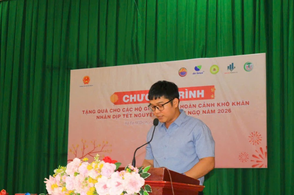 Phát biểu tại chương trình, đại diện lãnh đạo UBND xã Ea M’Droh bày tỏ sự trân trọng và cảm ơn sâu sắc trước sự quan tâm, sẻ chia, đồng hành của các doanh nghiệp, nhà tài trợ; khẳng định đây là hoạt động thiết thực, góp phần chăm lo đời sống cho các hộ gia đình khó khăn, giúp bà con đón Tết Bính Ngọ 2026 trong không khí ấm áp, nghĩa tình.