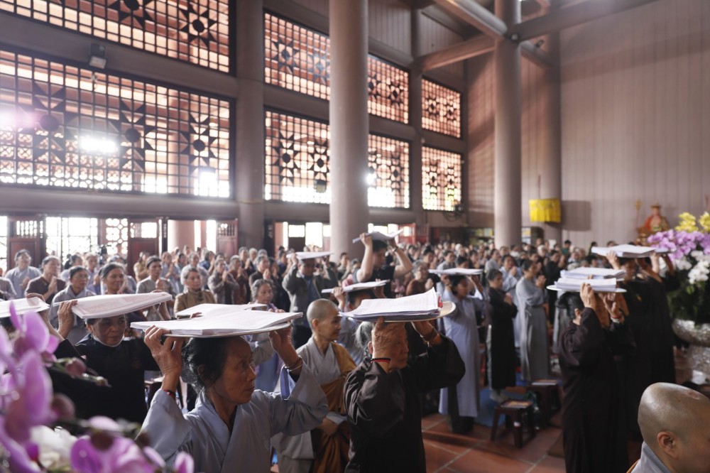 Buổi lễ diễn ra trong không khí trang nghiêm, thành kính với các nghi thức truyền thống: tụng kinh Dược Sư cầu nguyện tiêu tai diên thọ, quốc thái dân an và nghi thức dâng sớ cầu an đầu năm. Dưới sự chủ trì của chư Tôn đức, đại chúng đồng thanh trì tụng, nhất tâm hướng về Tam bảo, gửi gắm ước nguyện bình an cho bản thân và gia đình trong năm mới.