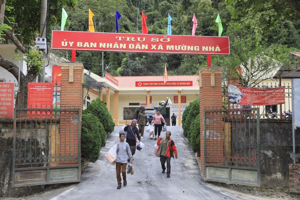 Tiếp tục hành trình, trong sáng ngày 4.11, đoàn đã trao thêm 100 phần quà nhu yếu phẩm cho các hộ dân có hoàn cảnh khó khăn tại xã Mường Nhà. Tiếp đoàn có bà Phạm Thị Ngọc Hà – Bí thư xã Mường Nhà.