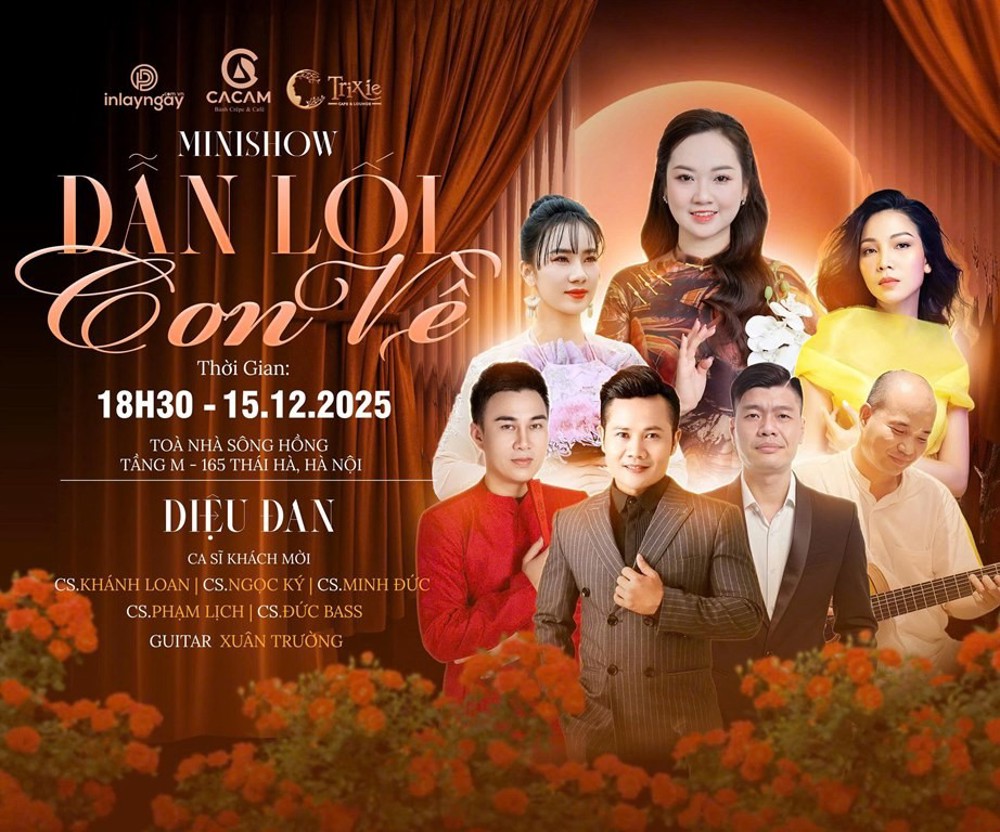 PSO – Với mong muốn mang âm nhạc Phật giáo đến với mọi tầng lớp, mọi đối tượng trong xã hội, không chỉ riêng chư Tôn đức Tăng Ni và quý Phật tử, tối ngày 15/12/2025, tại phòng trà Traxie (195 phố Thái Hà, Hà Nội), ca nhạc sĩ Phật tử Diệu Đan đã tổ chức mini show dòng nhạc mang âm hưởng Phật giáo mang tên “Dẫn lối con về”. Chương trình được thực hiện sau thành công của mini show “Dẫn lối con về” lần thứ nhất, kỷ niệm 10 năm ca hát dòng nhạc Phật giáo của Diệu Đan, được tổ chức cách đây tròn 3 năm, vào ngày 15/12/2022.