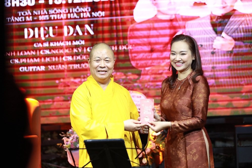 Phát biểu tại đêm nhạc, Hòa thượng Thích Thọ Lạc – Trưởng ban Văn hóa Trung ương GHPGVN đã đánh giá cao những nỗ lực, sự cống hiến không mệt mỏi vì đạo pháp của ca nhạc sĩ Phật tử Diệu Đan trong suốt thời gian qua. Đặc biệt, ca khúc “Việt Nam đón mừng Vesak” do Diệu Đan sáng tác đã được chọn làm ca khúc chủ đạo chào mừng Đại lễ Phật đản Liên Hợp Quốc Vesak 2025 tổ chức tại TP.HCM; cùng ca khúc “Phật ơi con đã thấy Ngài” chào đón Xá lợi Phật được tôn trí tại Việt Nam – một tác phẩm xúc động, để lại nhiều ấn tượng sâu sắc trong lòng chư Tăng Ni, Phật tử trong và ngoài nước.