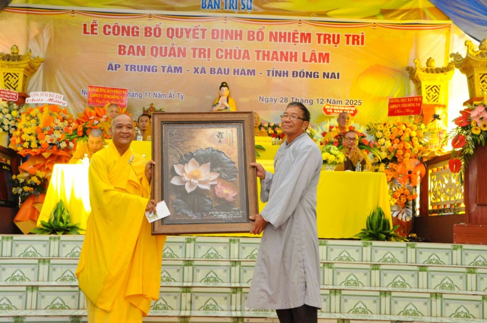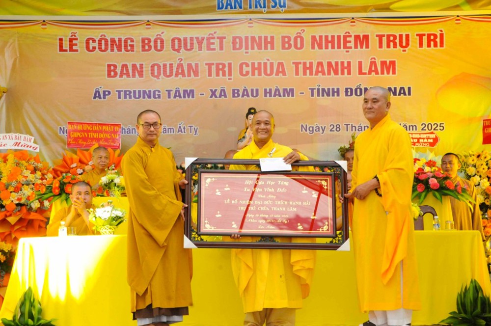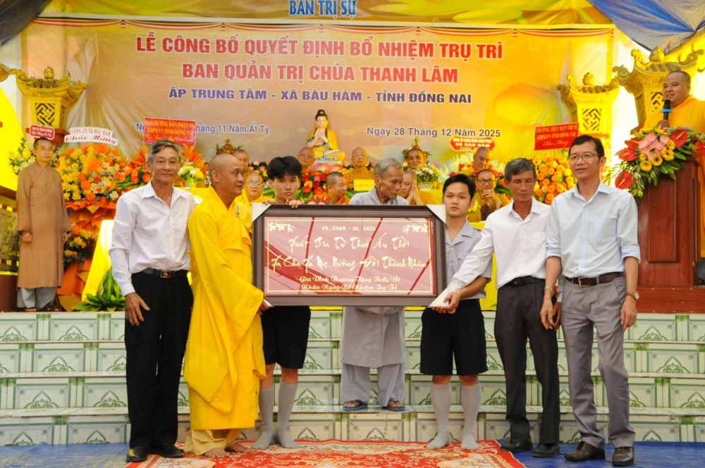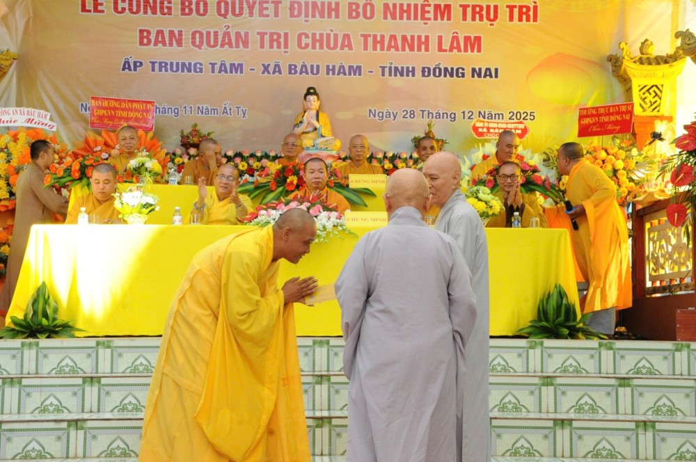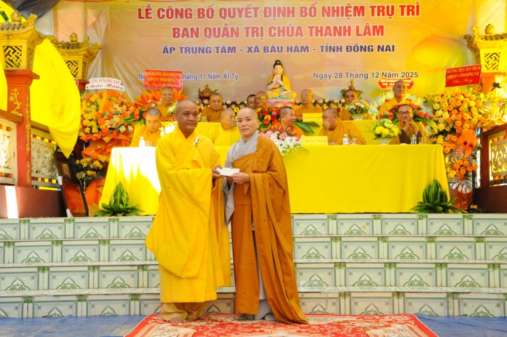 PSO - Sáng ngày 28/12/2025 (nhằm 09 tháng 11 năm Ất Tỵ), tại Chùa Thanh Lâm, xã Bàu Hàm, tỉnh Đồng Nai, Ban Trị sự GHPGVN tỉnh đã tổ chức lễ Công bố và trao Quyết định Bổ nhiệm Đại đức Thích Hạnh Hải tân Trụ trì, Trưởng Ban Quản trị Chùa Thanh Lâm.