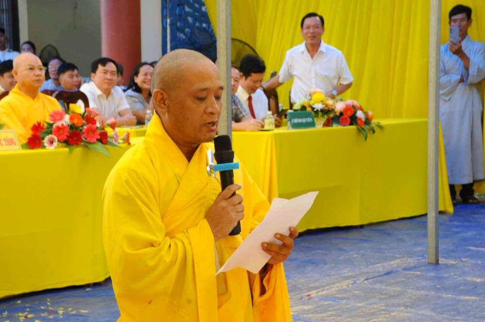 Sau lời phát biểu Khai mạc, ĐĐ. Thích Thiện Trí đã tuyên đọc Quyết định Bổ nhiệm Trụ trì – Ban Quản Trị Chùa Thanh Lâm.