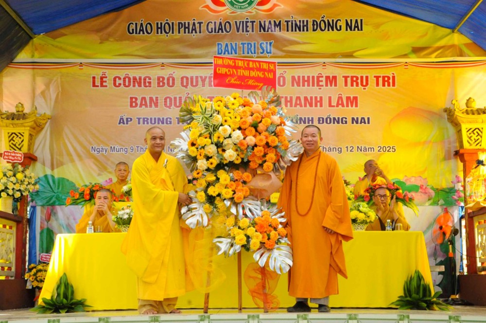 Tiếp đó, TT. Thích Huệ Khai – Trưởng Ban Trị sự GHPGVN tỉnh Đồng Nai và TT. Thích Minh Trì – Phó Ban Trị sự GHPGVN tỉnh Đồng Nai đã chính thức trao Quyết định Bổ nhiệm Đại đức Thích Hạnh Hải tân Trụ trì, Trưởng ban Quản Trị Chùa Thanh Lâm, xã Bàu Hàm.