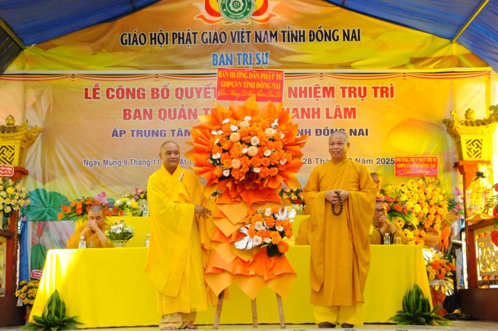 Cùng với đó, đại diện Thường trực Ban Trị sự GHPGVN tỉnh Đồng Nai, TT. Thích Huệ Khai đã phát biểu chúc mừng và khuyến tấn Đại đức Tân Trụ trì trên con đường hành đạo, đồng thời nhấn mạnh rằng trọng trách của người trụ trì không chỉ là trông nom ngôi chùa mà còn là người dẫn dắt Phật tử, bảo tồn văn hóa tâm linh, giữ gìn nếp sống đạo hạnh nơi chốn thiền môn.