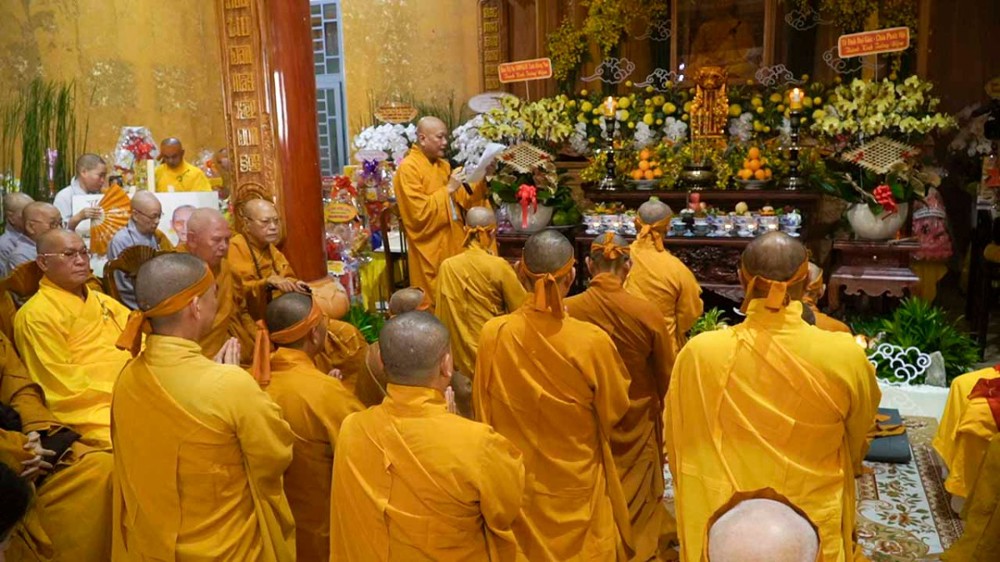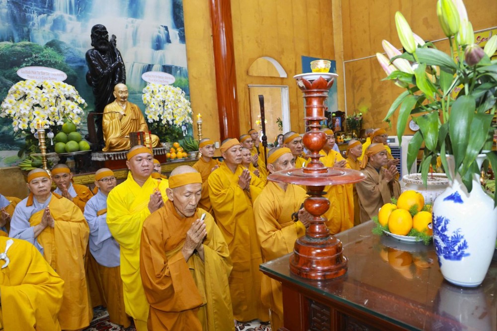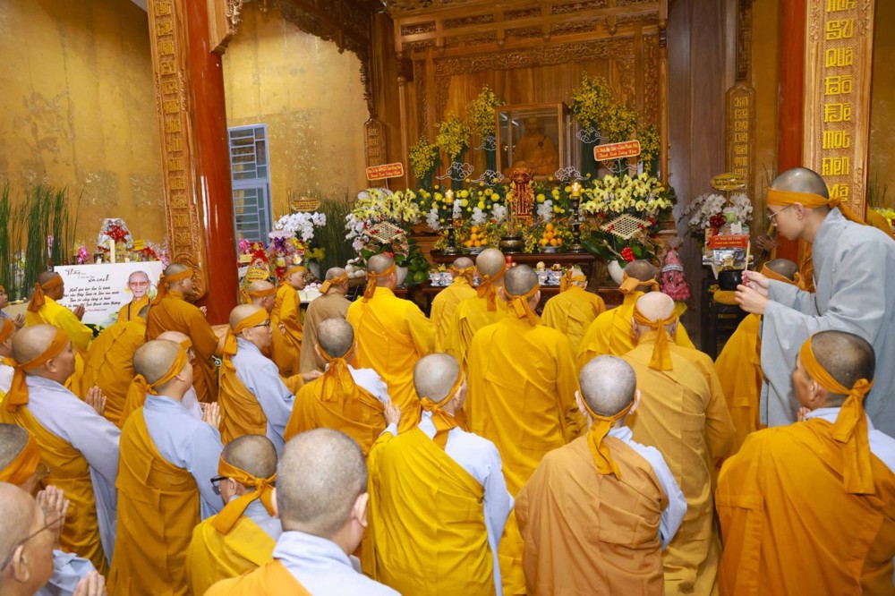 Trước Giác linh đài, Toàn thể Tăng ni một lòng thắp nén tâm hương tưởng niệm công hạnh của Ngài, nguyện cầu Giác linh Ngài cao đăng Phật quốc.