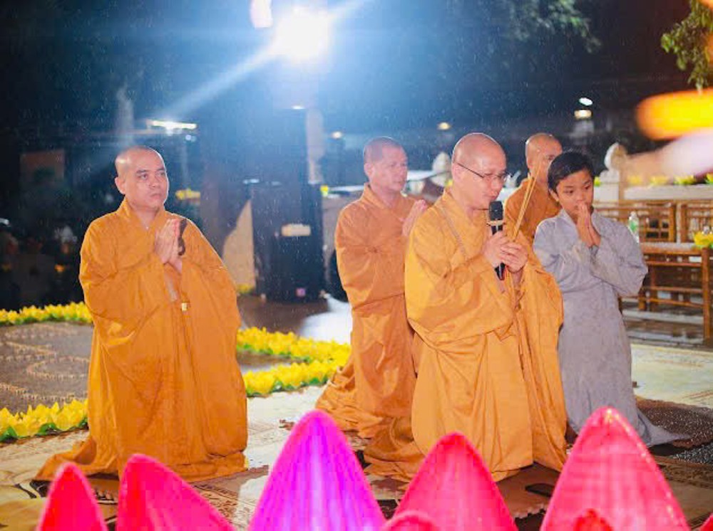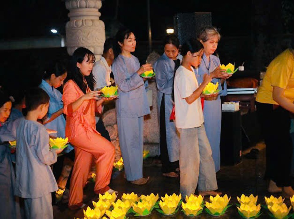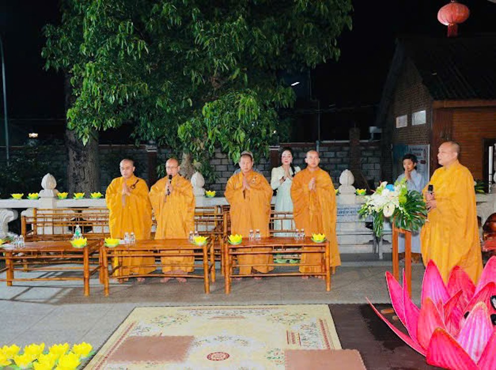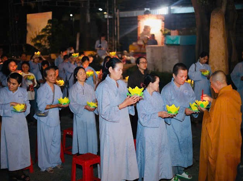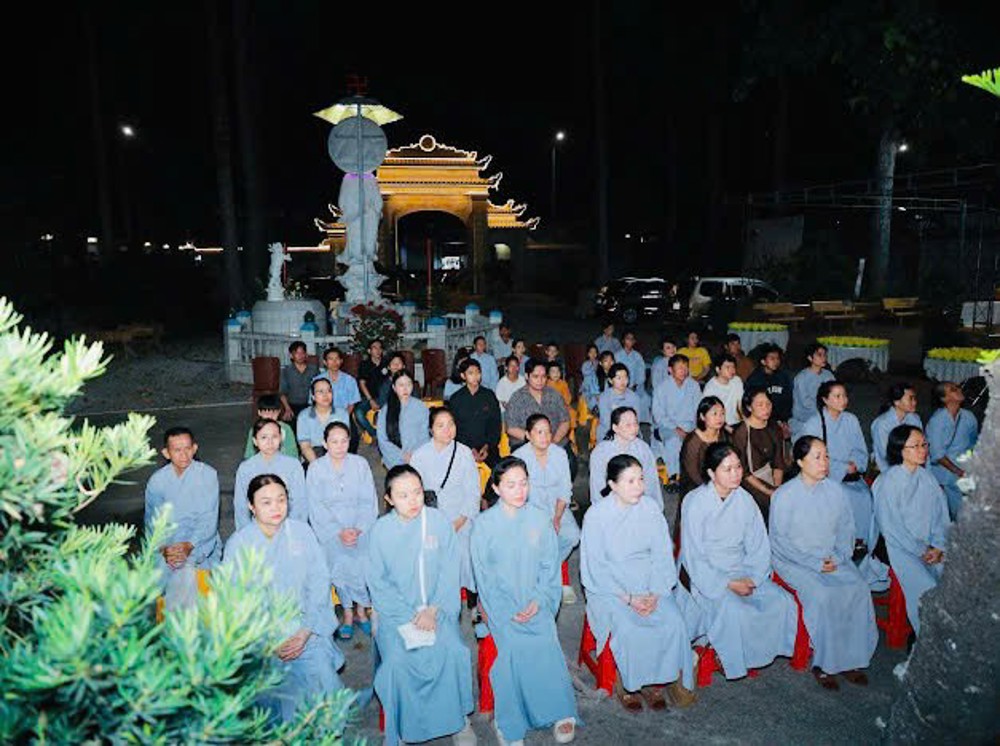 Buổi lễ được sự chứng minh và chủ trì của Đại đức Thích Thiện Hưng – Trưởng Ban Tổ chức, trụ trì chùa Tam Bảo, cùng sự quang lâm tham dự của chư Tôn đức và đông đảo Phật tử các nơi trong và ngoài địa phương. Ngay từ đầu giờ tối, khuôn viên chùa đã rực sáng ánh đèn hoa, tạo nên khung cảnh ấm áp, trang nghiêm nhưng cũng rất gần gũi, thấm đẫm tinh thần từ bi của pháp môn Tịnh độ.