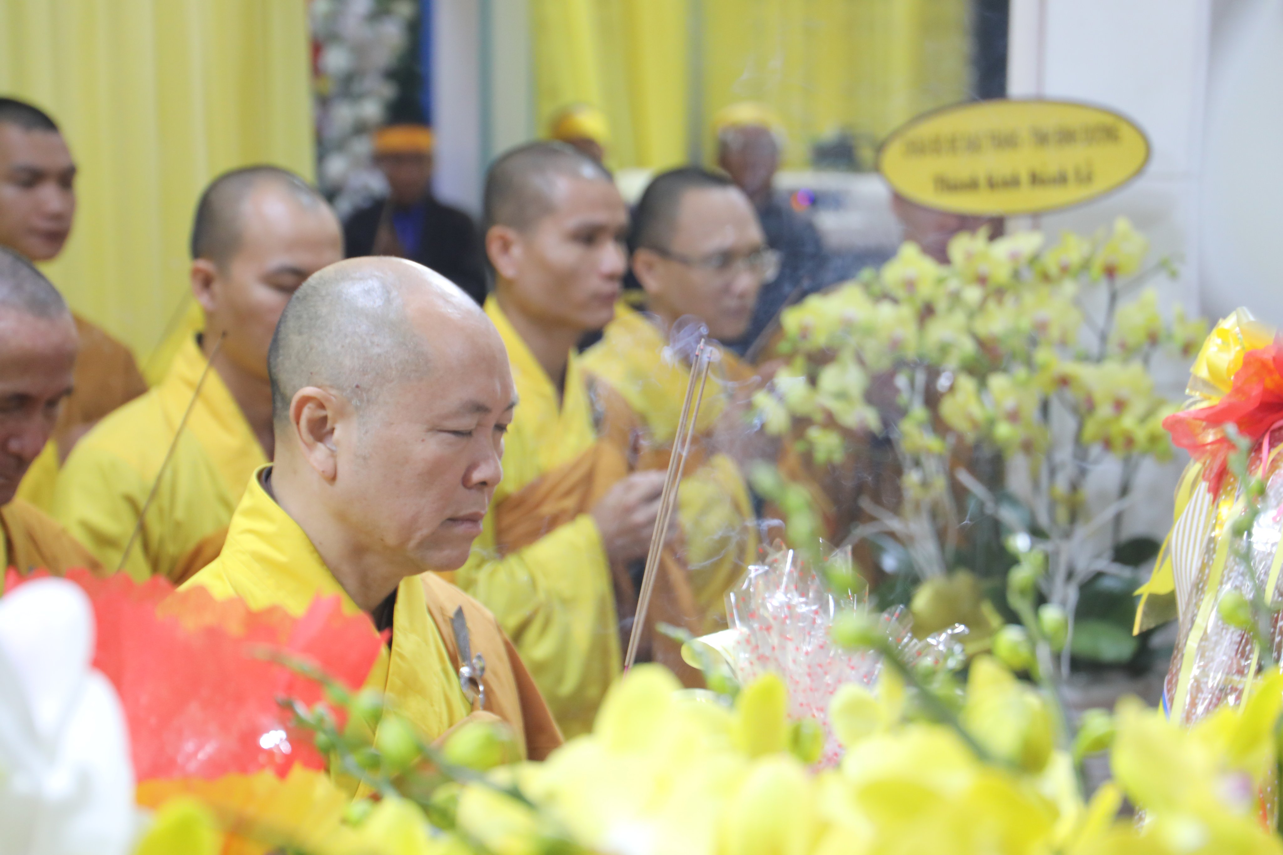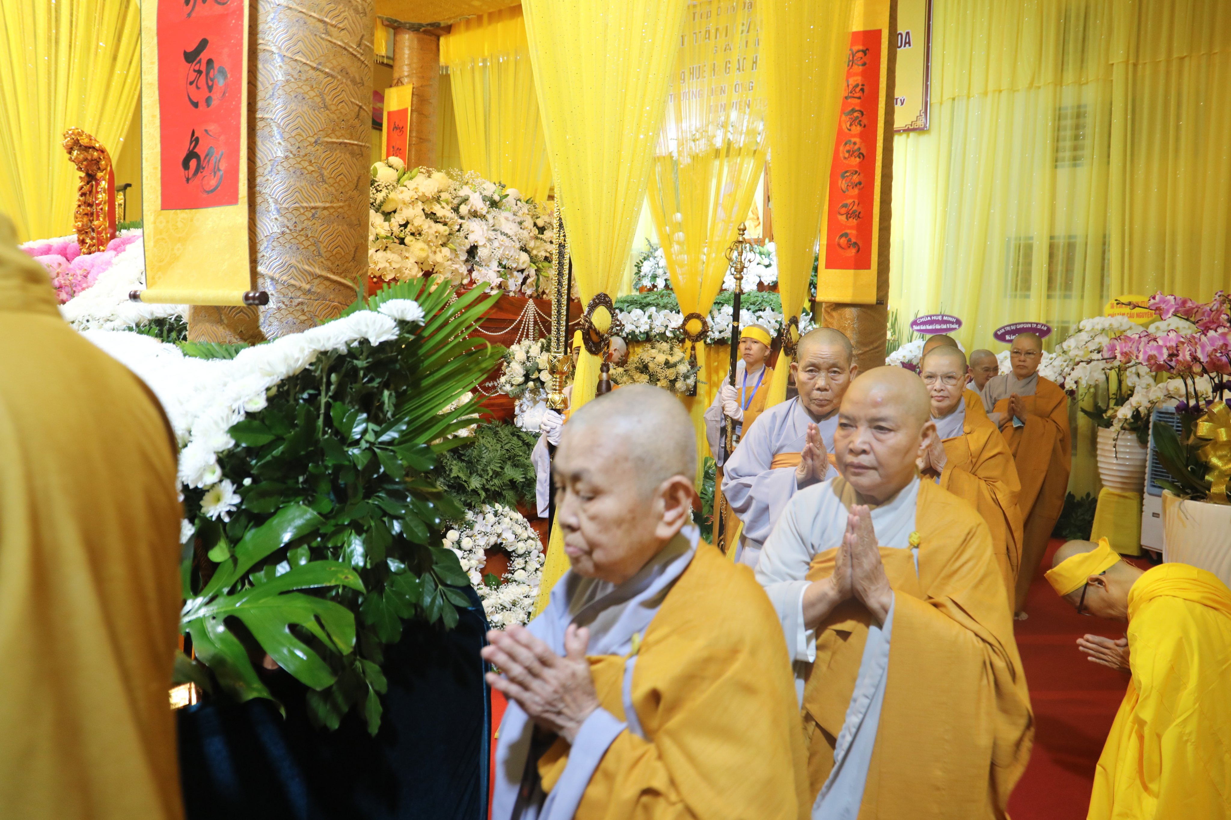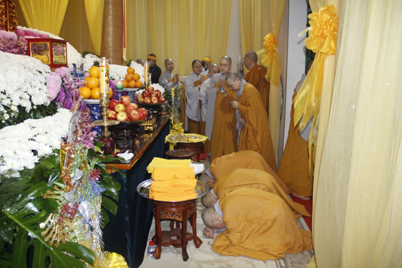 Tháp tùng phái đoàn có: HT.Thích Huệ Trí – Ủy viên (UV) Thường trực Hội đồng Trị sự (HĐTS), Trưởng ban Pháp chế TƯ GHPGVN; HT.Thích Giác Liêm – UV Thường trực HĐTS, Phó Văn phòng 2 TƯGH; TT.Thích Phước Nguyên – Ủy viên Thường trực Hội đồng Trị sự, Phó Chánh Văn phòng 2 TƯGH; cùng chư Tôn đức Thường trực HĐTS, Văn phòng 2 TƯ đồng trở về kính viếng Giác linh cố Ni trưởng và thắp nén tâm hương tưởng niệm. Sau đó, các Phái đoàn hữu nhiễu kim quan và ký sổ tang lưu niệm.