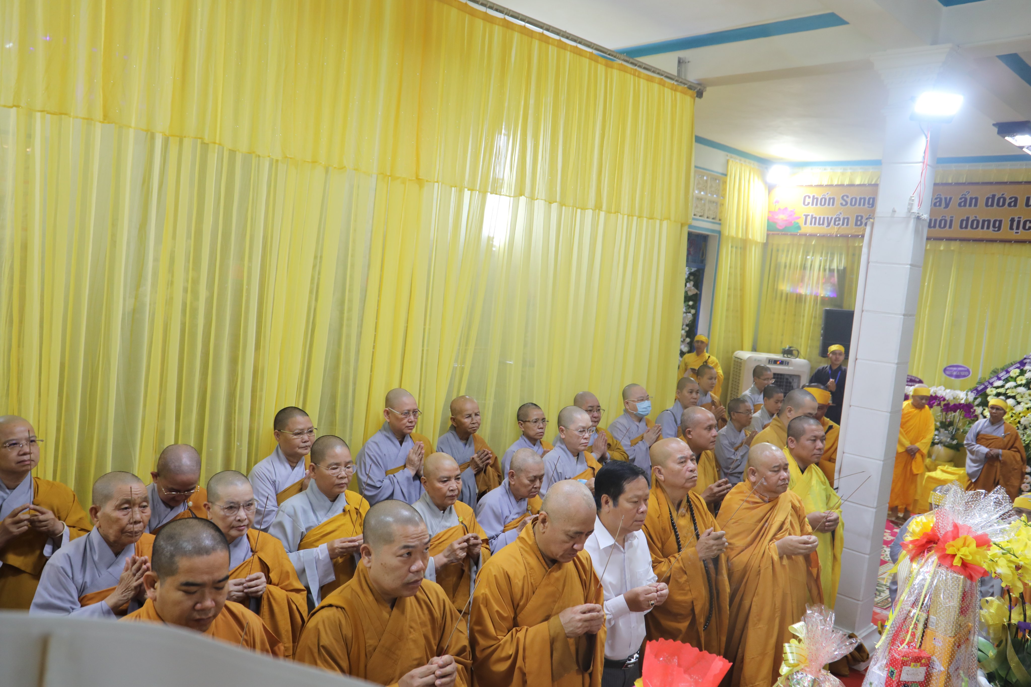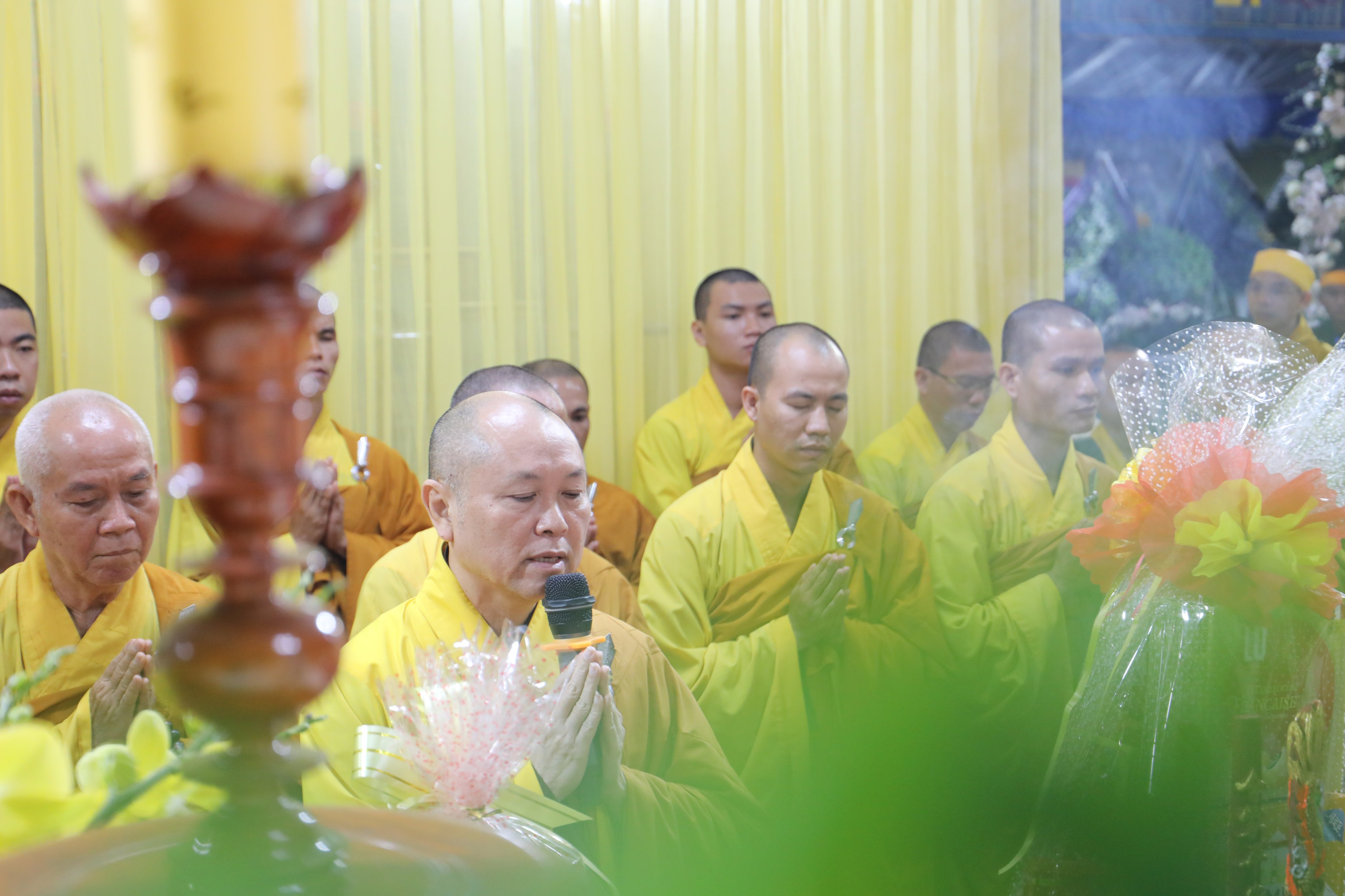 Đối trước Giác linh đài cố NT. Thích nữ Huệ Giác, chư Tôn đức Giáo phẩm đồng kính viếng, thắp hương tưởng niệm, dâng lời ai điếu tiễn biệt Giác linh Ni trưởng TN.Huệ Giác lần sau cuối, chia buồn cùng Môn phong Liên tông Tịnh độ Non Bồng nói chung và hàng môn nhơn pháp quyến, thiện nam tín nữ Phật tử nói riêng, một niềm tiếc thương sâu sắc nhất.
