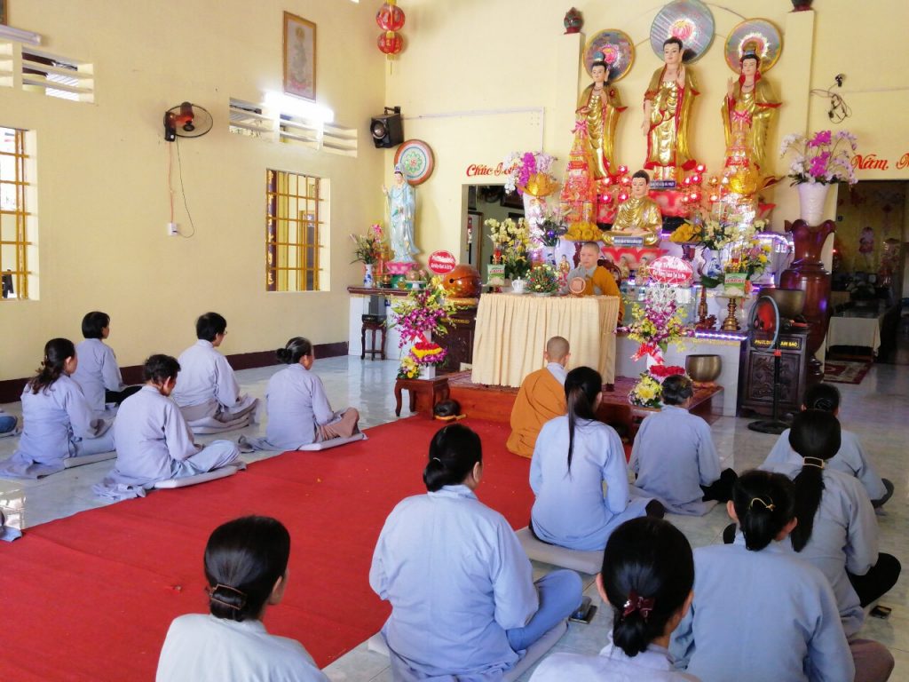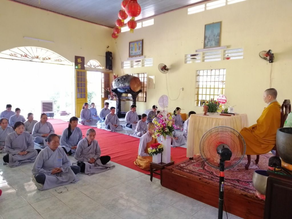 Sau nghi thức niêm hương bạch Phật Khai khóa, Sư cô Trụ trì đã có thời Pháp thoại chủ đề: “Vai trò của nữ Phật tử trong nhà chùa”. Nối tiếp chương trình là Khóa lễ trì Đại Bi Niệm Phật; Cúng Ngọ; Thọ trai...