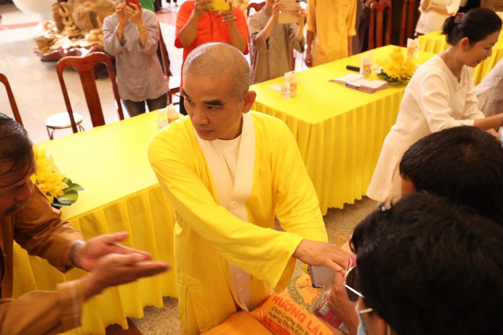 Phát biểu tại buổi trao quà, Đại đức Thích Tuệ Hải gửi lời tri ân đến chính quyền huyện đã quan tâm, hỗ trợ bà con có hoàn cảnh khó khăn trong mùa Vu lan. Đại đức Trụ trì cũng gửi lời động viên bà con cố gắng vươn lên vượt khó, luôn tin yêu vào cuộc sống và siêng làm những điều thiện lành!.