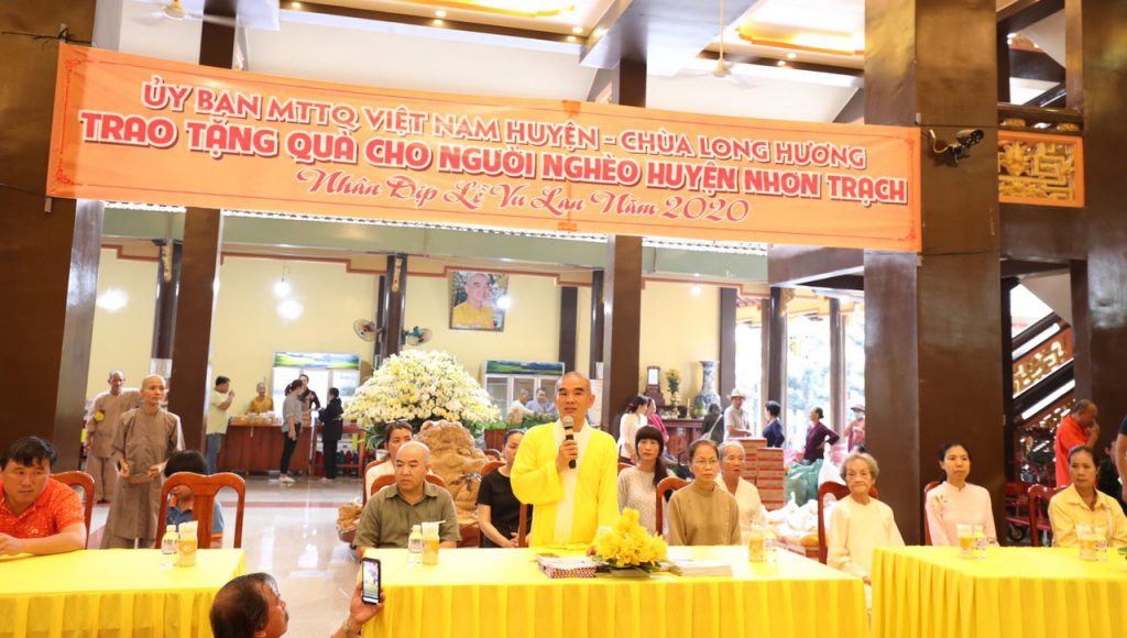 Đại diện chính quyền cũng đã chân thành cảm ơn đại đức trụ trì chùa Long Hương vì đã luôn đồng hành cùng địa phương trong nhiều hoạt động từ thiện, góp phần ổn định công tác an sinh xã hội, xây dựng huyện nhà càng ngày càng giàu đẹp!.