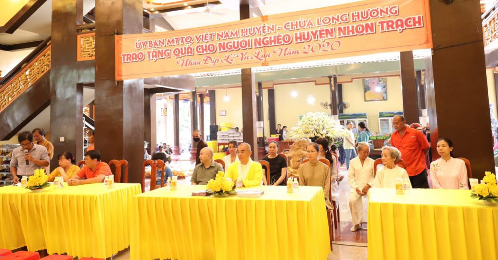 Tại đây, chùa Long Hưng và chính quyền đã trao tặng 580 phần quà đến bà con có hoàn cảnh khó khăn, người mù, người nhiễm chất độc màu da cam của các xã thuộc huyện Nhơn Trạch. Mỗi phần quà gồm: gạo, một số nhu yếu phẩm và phong bì tiền mặt.