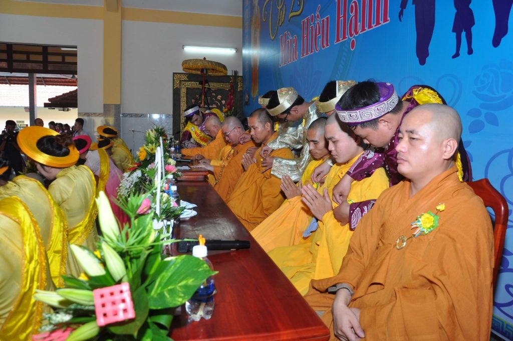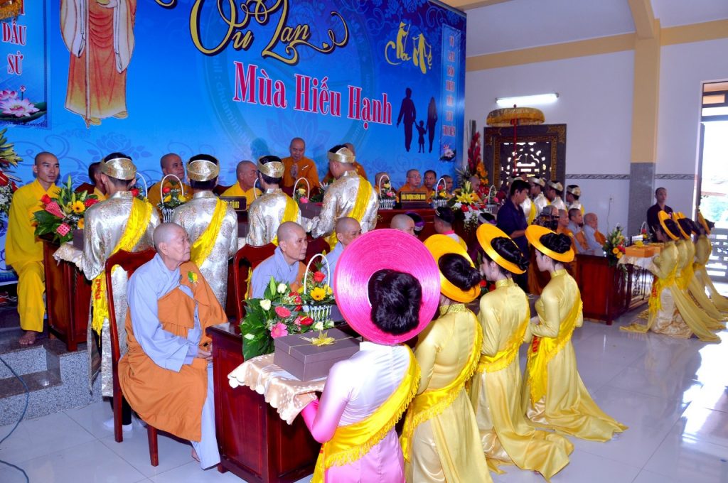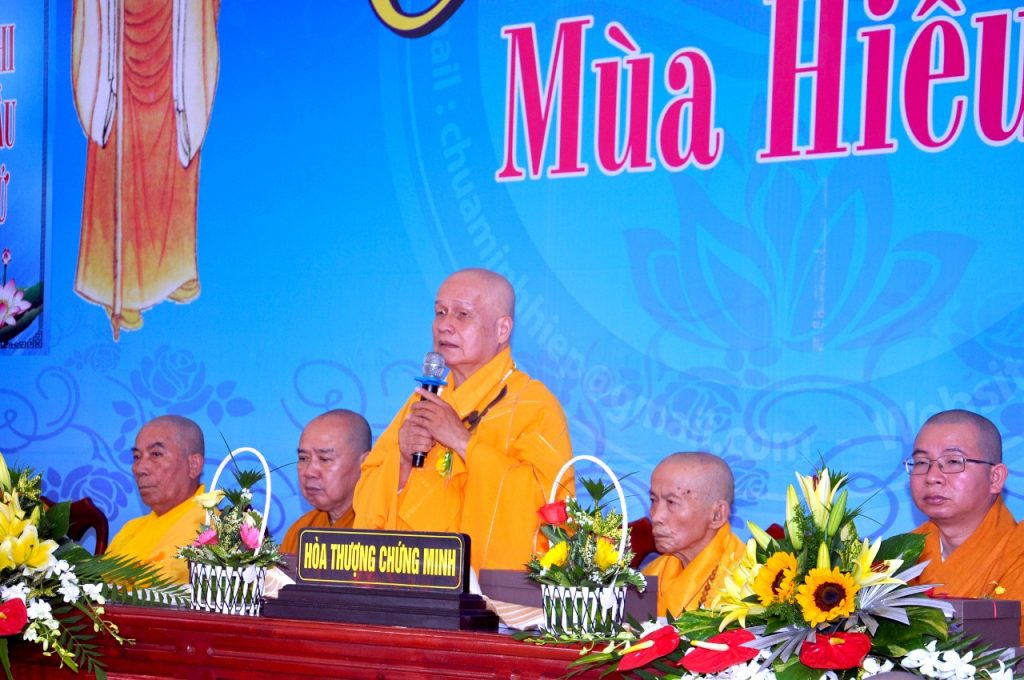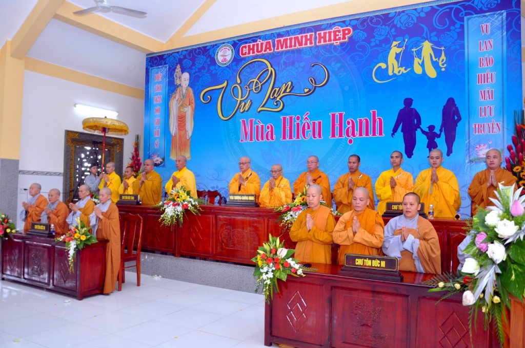 Tại buổi lễ, HT. Thích Thiện Đồng thay lời cho Hòa Thượng chứng minh ban đạo từ, Hòa thượng tán thán công đức của Đại đức trụ trì chùa Minh Hiệp, mặc dù đang trong giai đoạn xây dựng ngôi Đại hùng bảo điện, nhưng vì nghĩ đến ân Tam bảo, công ơn cha mẹ nên Đại đức đã thiết lễ Vu lan Báo hiếu. Bên cạnh đó, Ngài cũng tán dương công đức quý Phật tử đã phát tâm dõng mãnh, cúng dường dâng y mùa Vu lan, sách tấn hàng Phật tử hãy làm các việc thiện lành, hồi hướng cho cha mẹ, cũng như thể hiện lòng hiếu thảo bằng những sự quan tâm, chăm sóc cho cha mẹ hiện tiền.