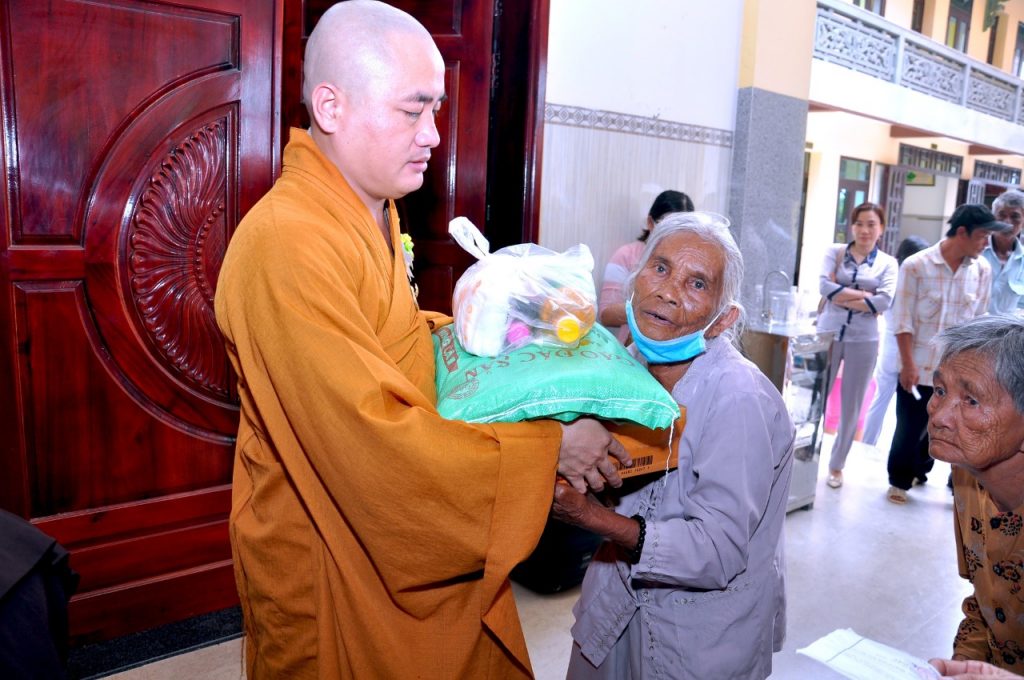 Dịp này, chùa Minh Hiệp trao tặng 140 phần quà chia sẻ yêu thương đến bà con có hoàn cảnh khó khăn tại địa phương.