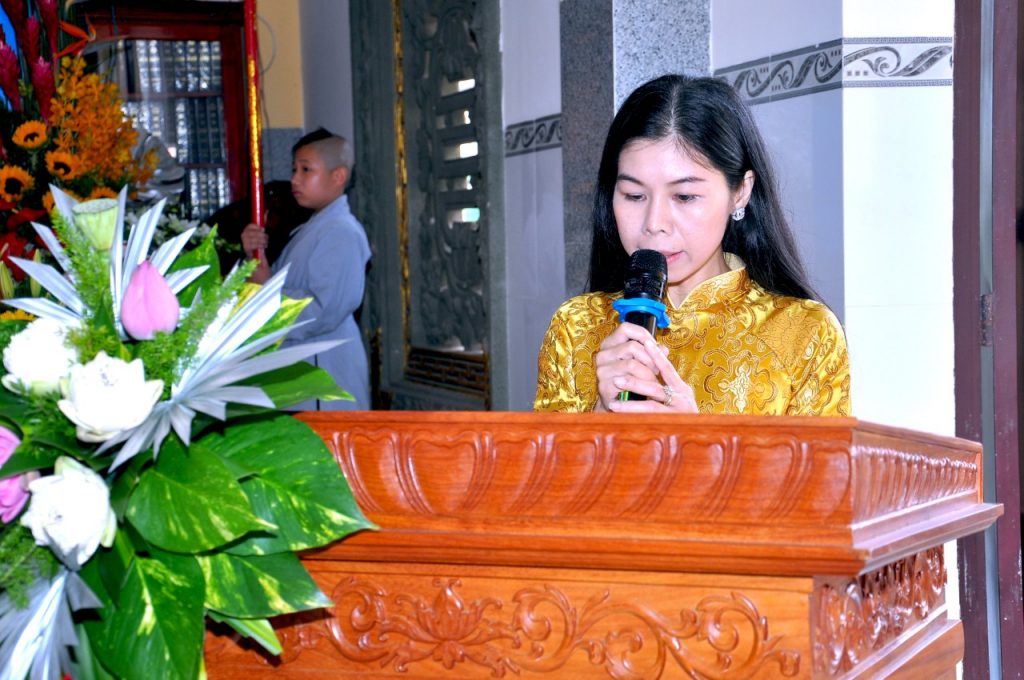Trong lễ cài hoa hồng, Phật tử Như Trang đã chuyển tải dòng cảm xúc đến hội chúng qua bài ý nghĩa hoa hồng – cảm niệm công ơn về cha mẹ làm cho cả pháp hội đều rưng rưng dòng lệ. Noi gương hiếu hạnh của Tôn giả Mục Kiền Liên, Đại đức Thích An Quang và đạo tràng Phật tử thành kính dâng lên cúng dường chư Tôn đức chứng minh, hồi hướng công đức cho cha mẹ hiện tiền được bình an, cha mẹ quá vãng được sanh về thế giới an lành.