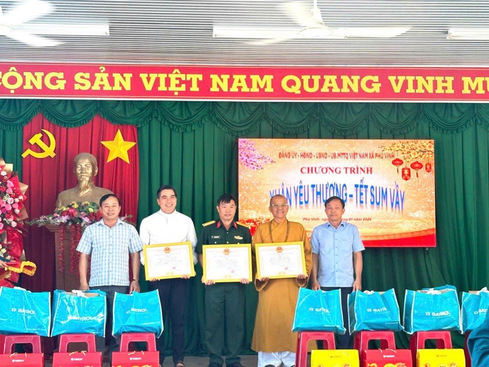 PSO - Trong không khí ấm áp, nghĩa tình của những ngày cận Tết cổ truyền dân tộc, sáng ngày 24/1/2026 (nhằm ngày 06/12 năm Ất Tỵ), chùa Phước An (xã Long Thành) đã long trọng tổ chức chương trình trao tặng quà Tết cho các hộ gia đình có hoàn cảnh khó khăn trên địa bàn xã Phú Vinh. Chương trình do Thượng tọa Thích Huệ Nghiệp – Phó Trưởng Ban Trị sự GHPGVN tỉnh, Trụ trì chùa Phước An trực tiếp chủ trì.