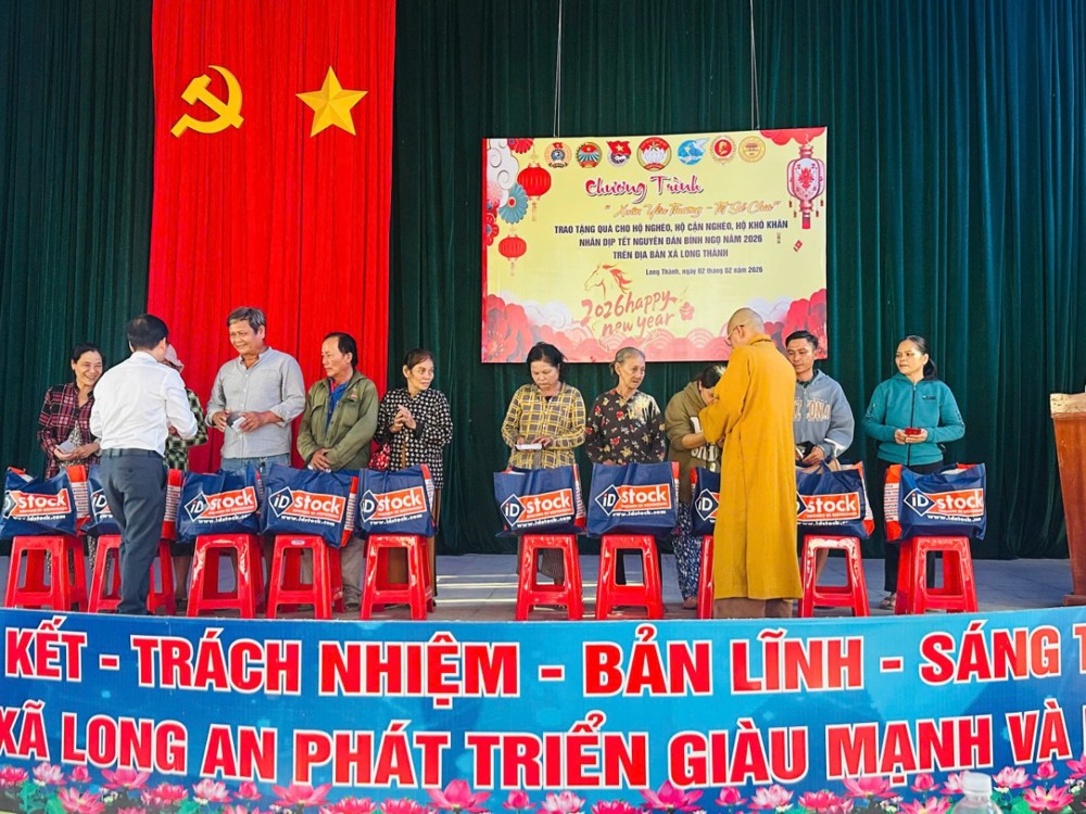 PSO - Trong tinh thần từ bi cứu khổ của đạo Phật, sẻ chia cùng cộng đồng trước thềm năm mới, ngày 2/2/2026 (nhằm ngày 15 tháng Chạp năm Ất Tỵ), chùa Phước An đã tổ chức chương trình trao tặng 400 phần quà Tết đến các hộ gia đình có hoàn cảnh khó khăn trên địa bàn xã Long Thành.