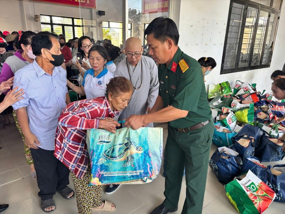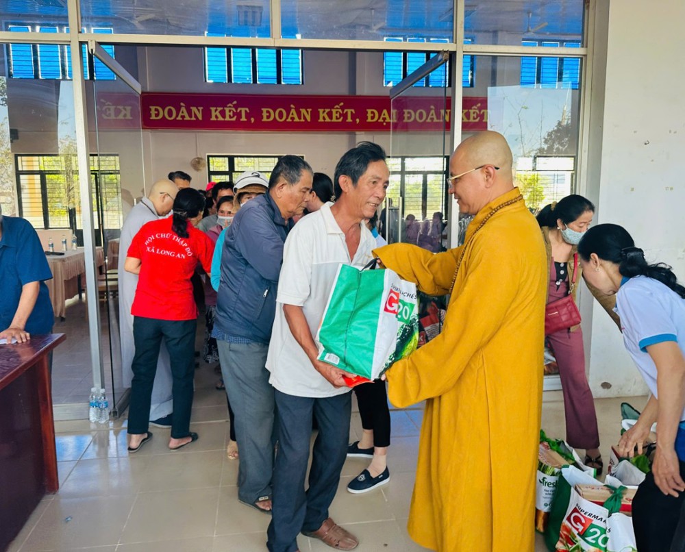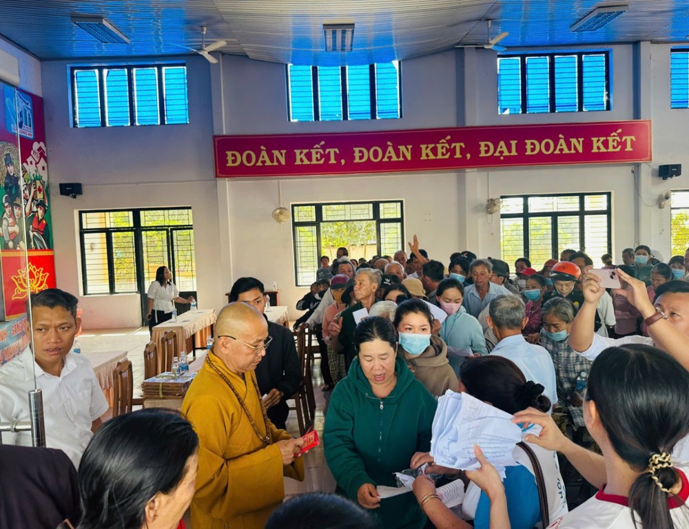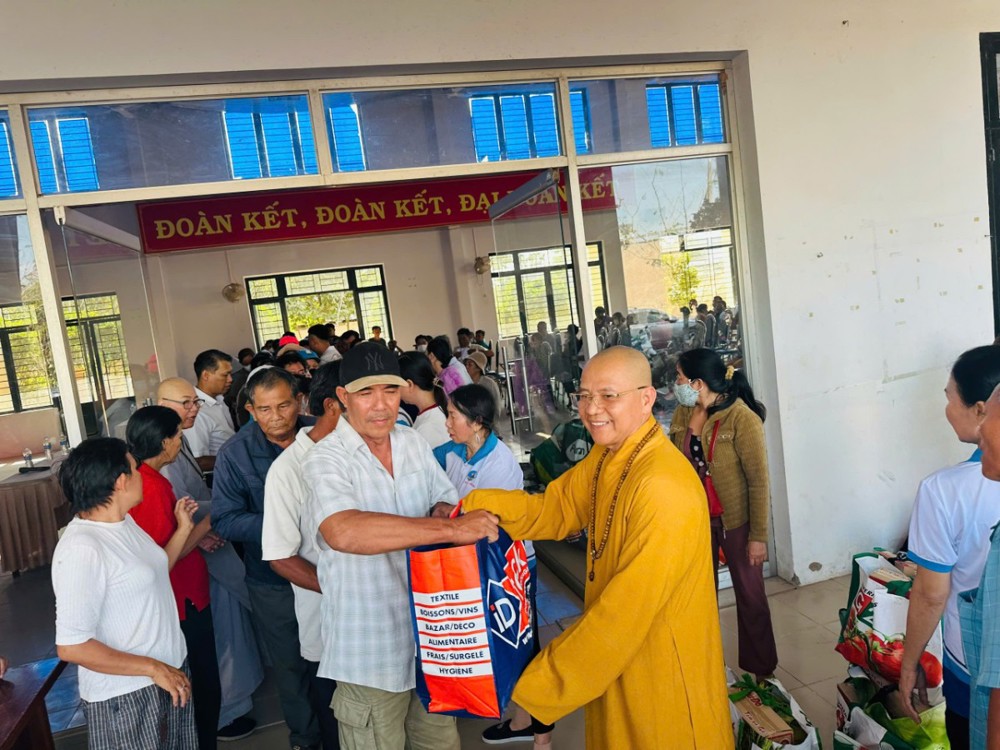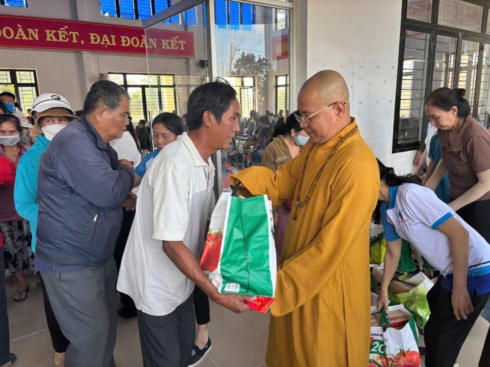 400 phần quà Tết đã được trao cho bà con, mỗi phần trị giá 500.000 đồng, gồm các nhu yếu phẩm thiết yếu như gạo, mì gói, gia vị, thực phẩm khô… và bao thư tiền mặt 100.000 đồng. Tuy giá trị vật chất không lớn, nhưng mỗi phần quà là sự gửi gắm nghĩa tình, là tấm lòng sẻ chia của chư Tăng, Ni, Phật tử và các mạnh thường quân đến với những hoàn cảnh còn nhiều khó khăn trong cuộc sống.