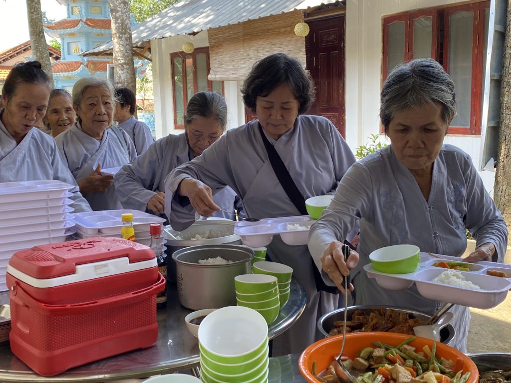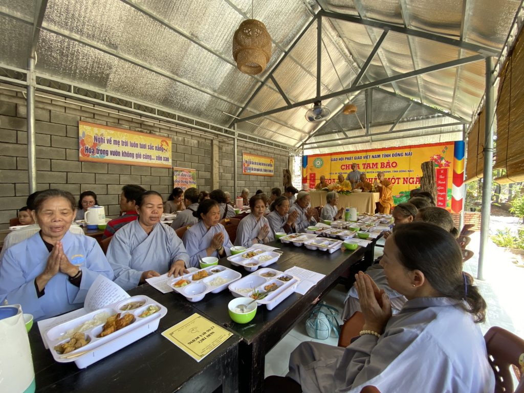 Sau thời thuyết giảng, đại chúng thực hành nghi thức cúng ngọ Phật, dùng cơm trong chánh niệm và sau đó là kinh hành niệm Phật. Khóa tu tiếp tục sau 1 giờ đồng hồ chỉ tịnh vào buổi trưa, và kết thúc lúc 16g00 cùng ngày. Trước khi kết thúc Khóa tu, chư Tăng chùa Tam Bảo và toàn thể hội chúng cùng hướng về đồng bào miền Trung, cầu nguyện mưa thuận gió hòa, mọi người sớm khắc phục được khó khăn hiện tại để tiếp tục vươn lên trong cuộc sống. Sau đây là một số hình ảnh ghi nhận tại khóa tu: