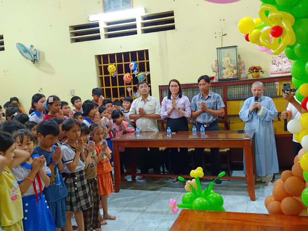 Ông Lê Trung Dũng, đại diện nhà tài trợ, gửi lời cảm ơn đến nhà chùa và chính quyền xã Nhơn Trạch đã tạo điều kiện để công ty có cơ hội chung tay lan tỏa yêu thương đến các em thiếu nhi. Ông chia sẻ niềm hạnh phúc khi được nhìn thấy nụ cười rạng rỡ của các em, đồng thời chúc các em chăm ngoan, học giỏi, vâng lời cha mẹ và thầy cô.