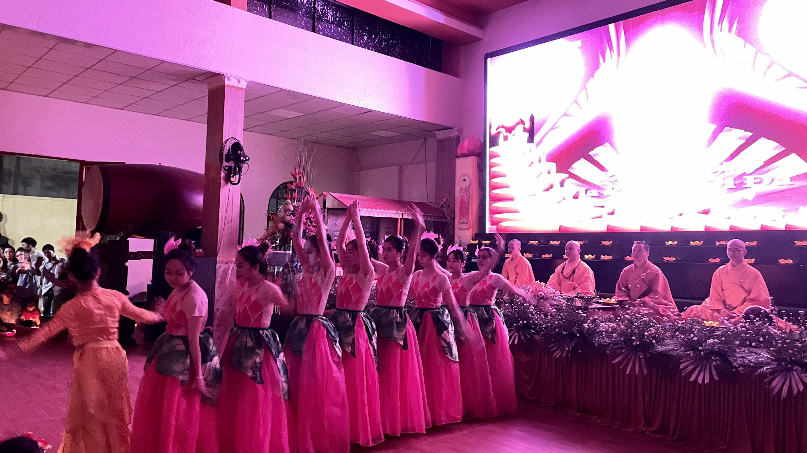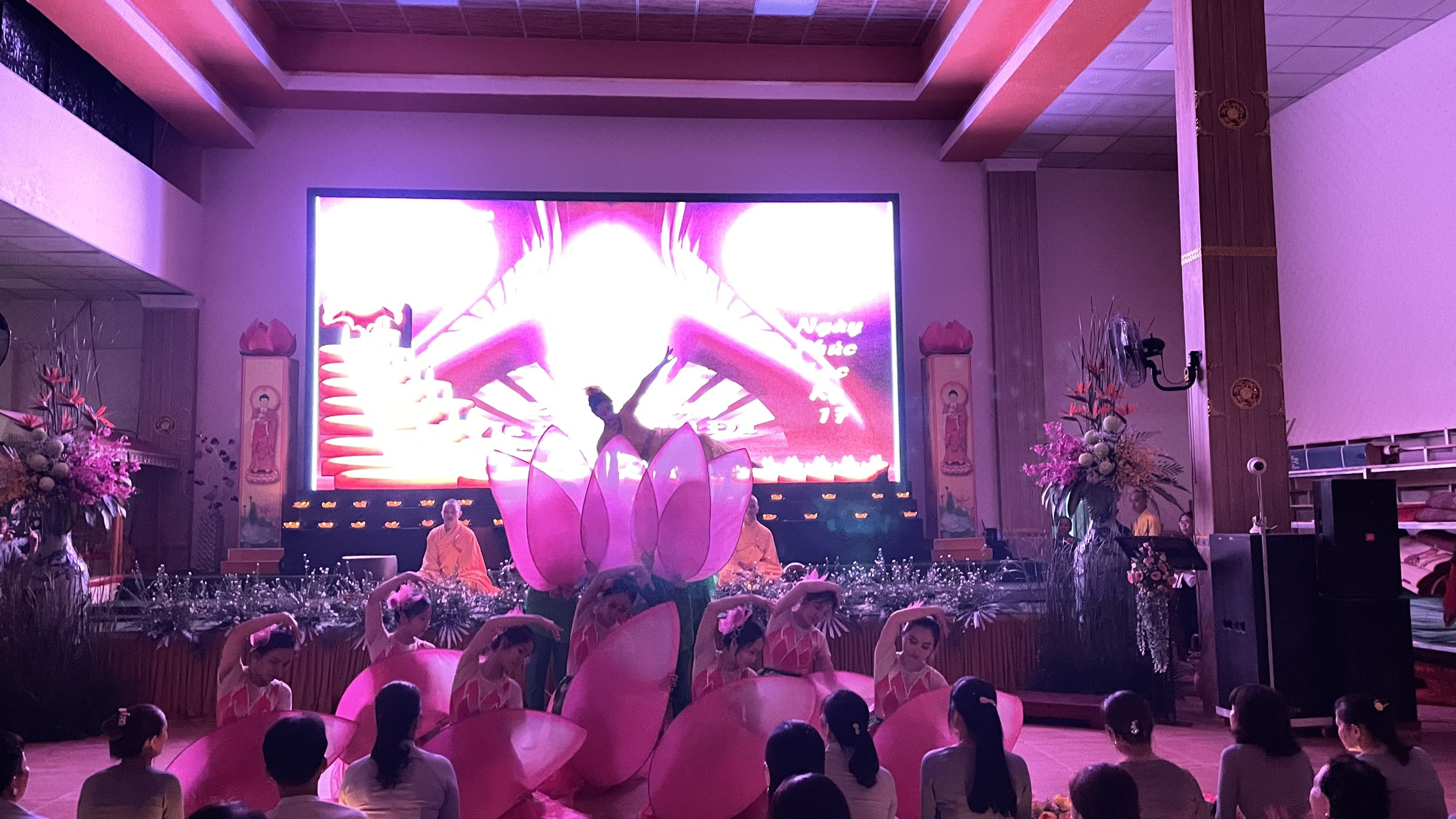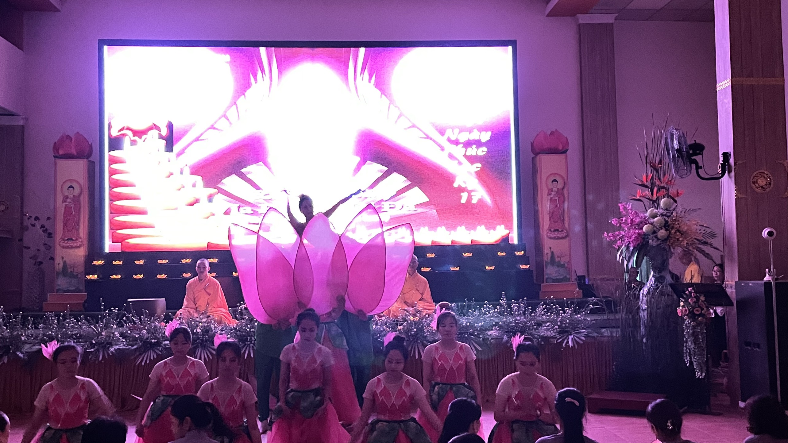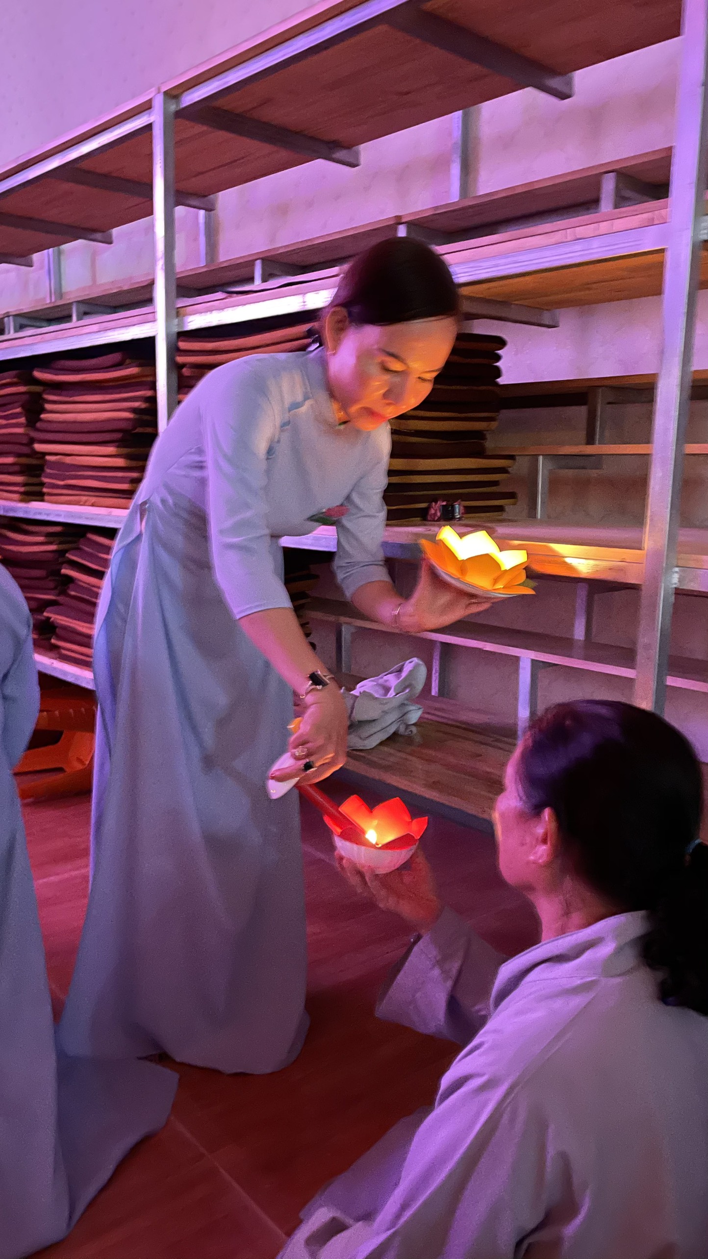 TT.Thích Trí Định tuyên đọc và đảnh lễ bốn mươi tám lời Phát nguyện của đức Phật A Di Đà. Tất cả Phật tử tay nâng ngọn hoa đăng đồng trang nghiêm gửi lời nguyện cầu đến gia đình, người thân và toàn thể nhân sanh được sống an lành. Trong không khí ấm áp, chư Tôn đức tiến hành nghi thức truyền đăng, ánh sáng được tiếp nối từ ngọn đèn tuệ giác của đức Từ phụ, được chư Tôn đức gìn giữ và trao truyền qua các thế hệ. Những ngọn nến lung linh huyền diệu lan tỏa khắp không gian, sáng soi khắp pháp giới dâng lên đức Phật, nhắn gửi nơi đây một thông điệp tuệ giác, soi sáng tâm thức con người hãy lìa biển mê về đến bến giác.