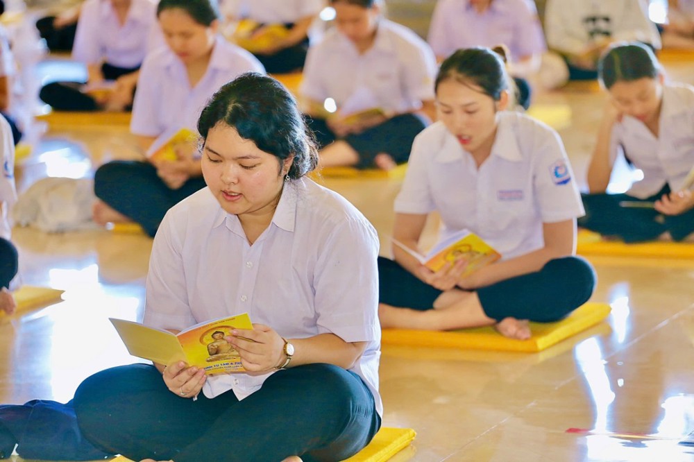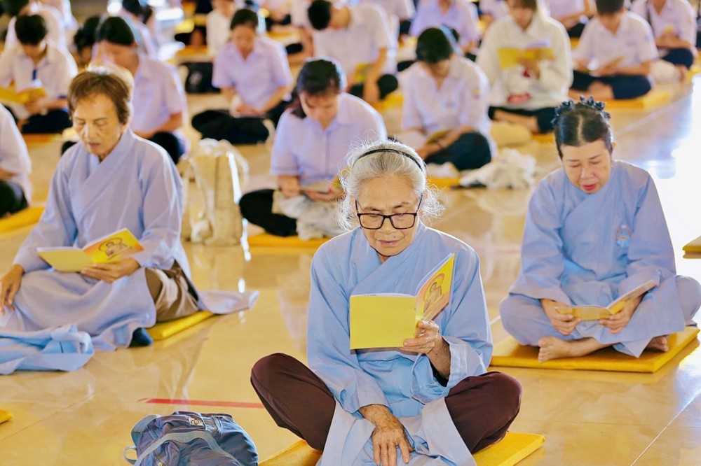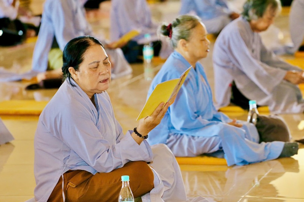 Sau thời pháp thoại, đại chúng cùng tụng kinh Phước Đức, đồng nguyện cầu hồng ân Tam Bảo gia hộ cho tất cả hành giả tham dự khóa tu thân tâm thường an lạc, đạo tâm tăng trưởng, luôn tinh tấn trên con đường tu học và phụng sự nhân sinh.