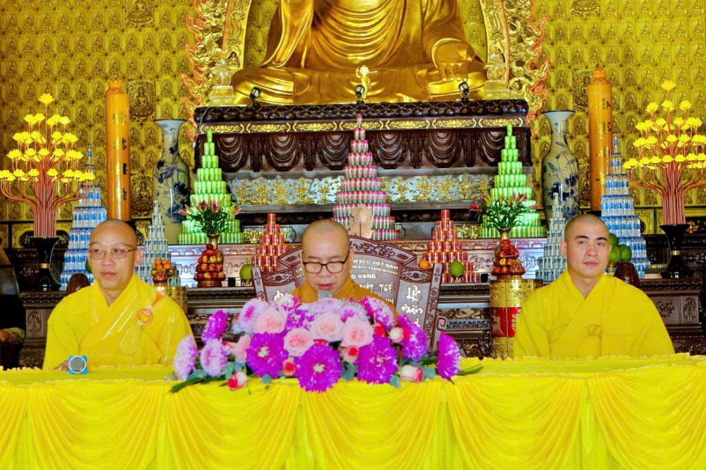 Sau nghi thức truyền giới trang nghiêm, toàn thể đạo tràng cung nghinh Thượng tọa Thích Hoàng Dự – Giảng sư, Ủy viên Ban Hoằng pháp Trung ương GHPGVN, Giáo thọ sư Trường Cao Trung Phật học TP.HCM quang lâm đăng đàn thuyết pháp.