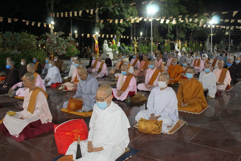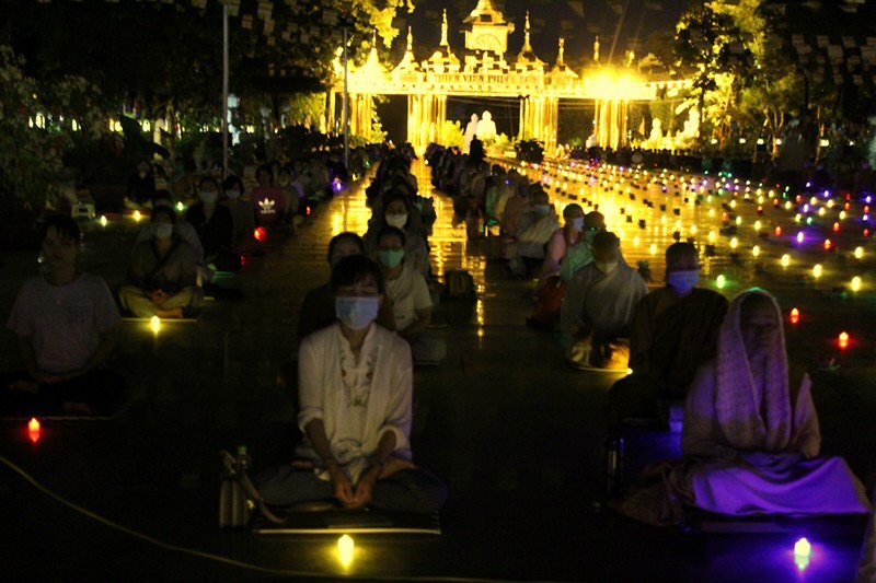 Dịp này, đại chúng thắp nến cầu nguyện, dâng hoa đăng nhiễu Phật, tụng kinh Tâm Từ.