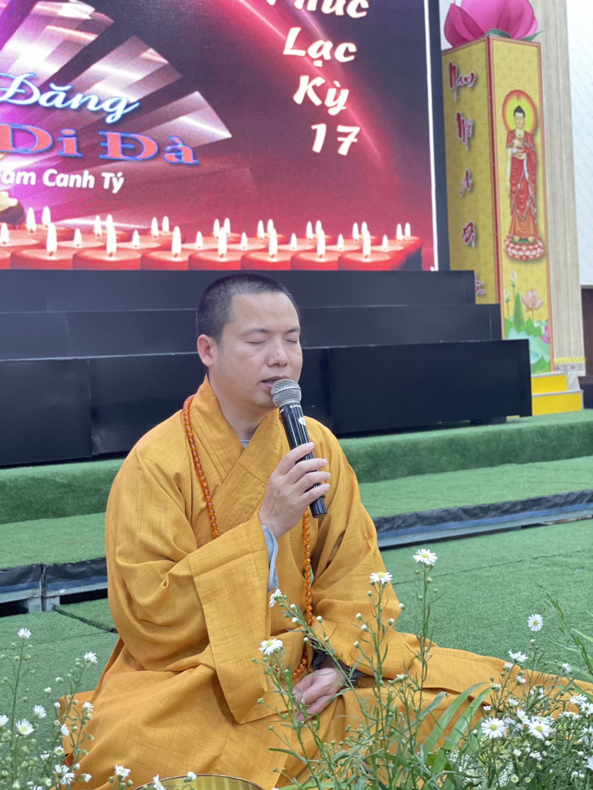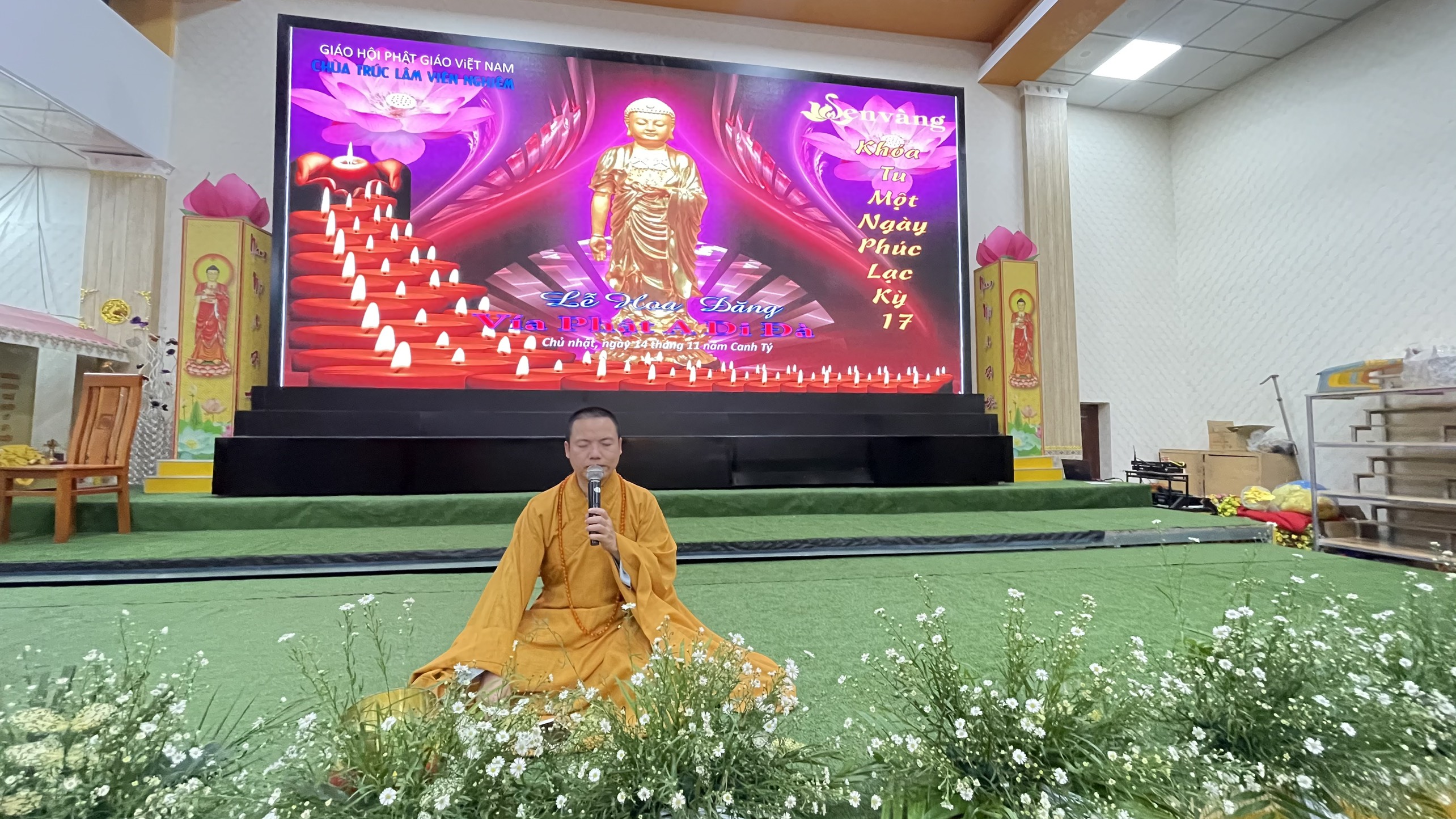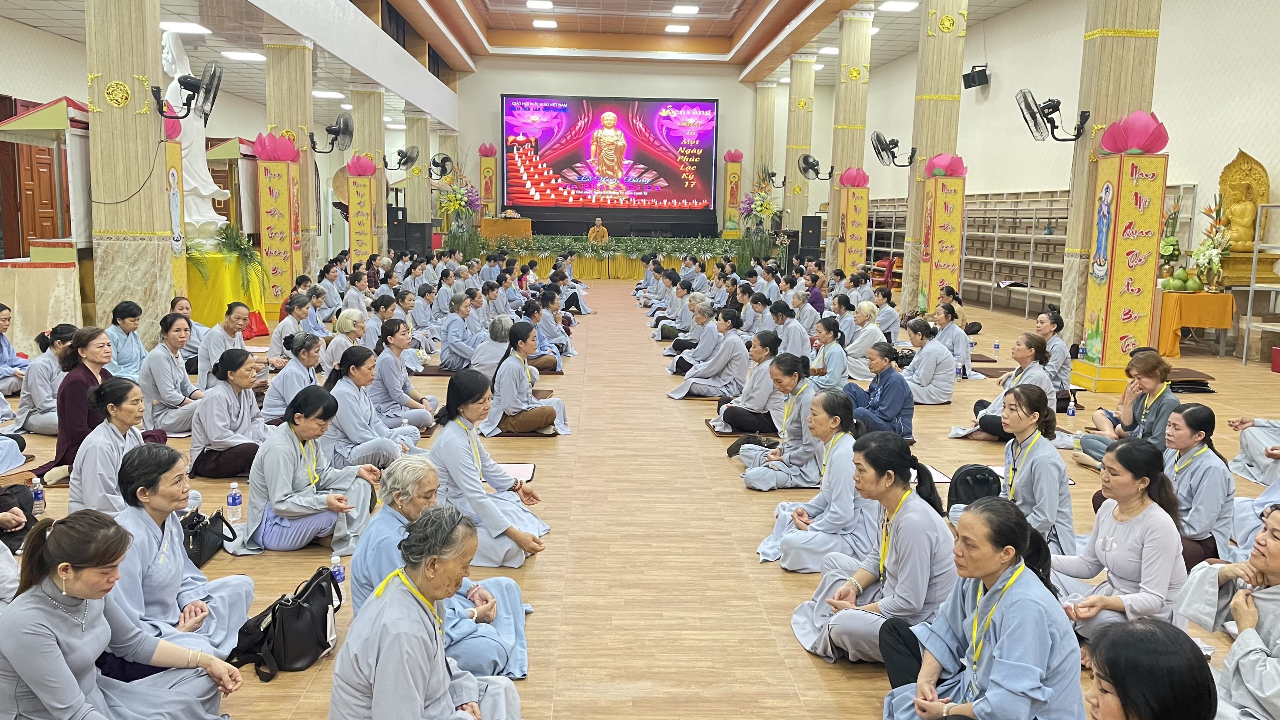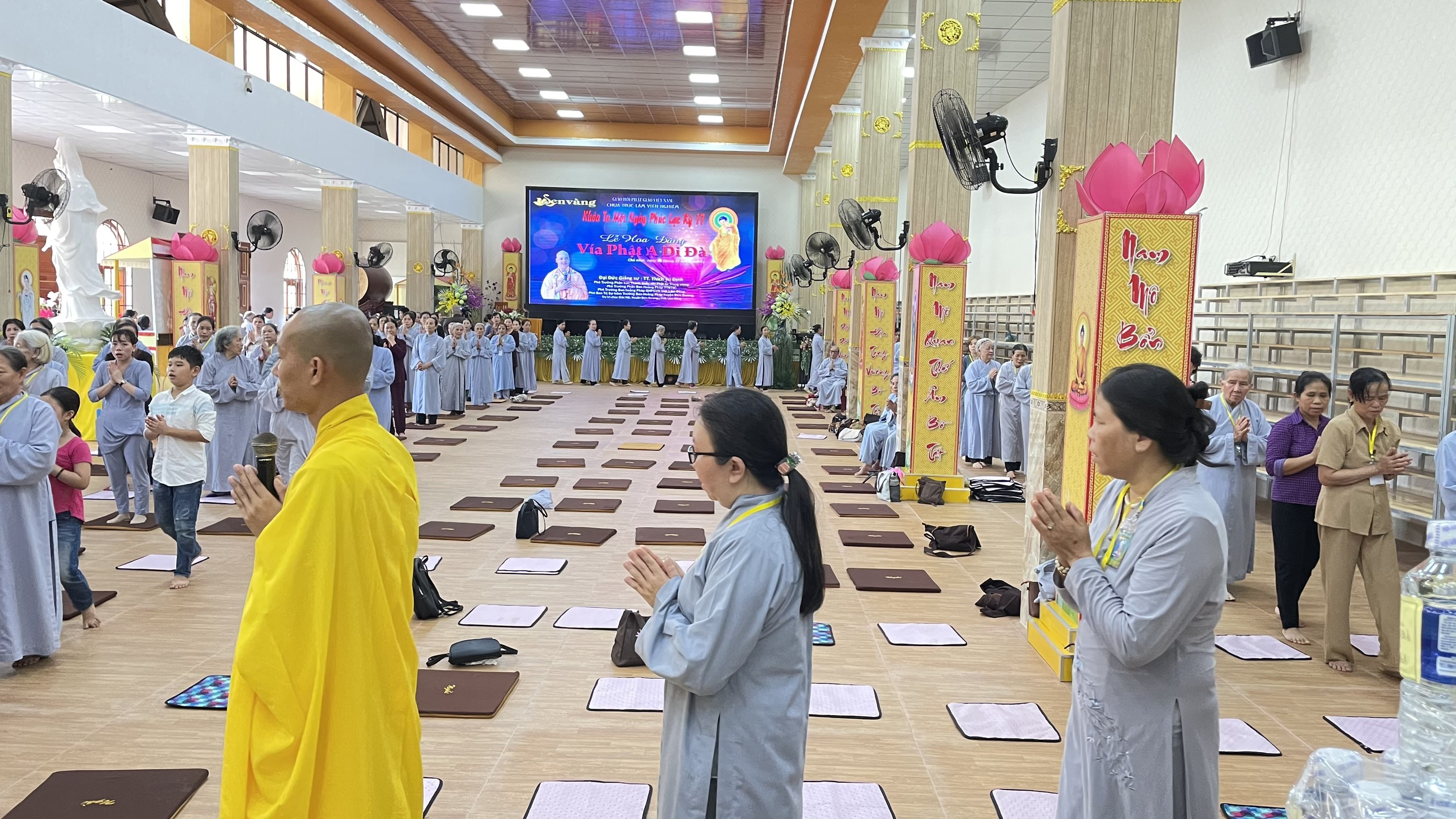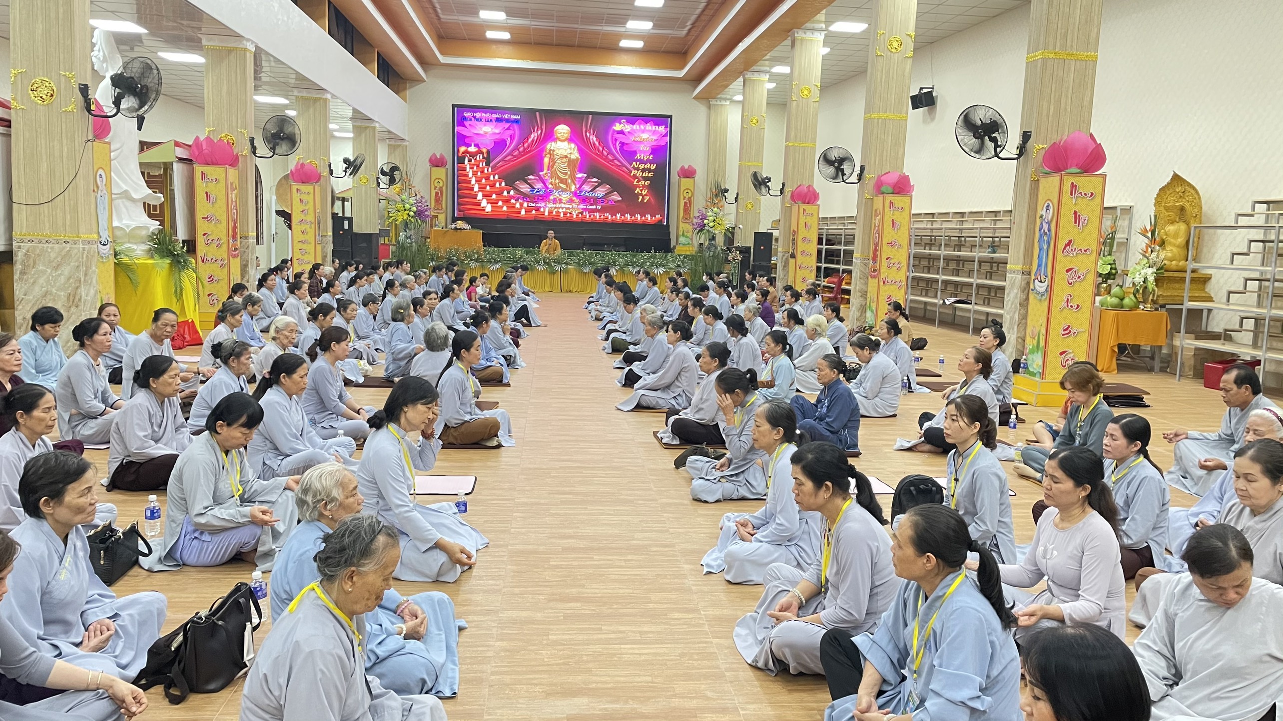 Buổi chiều cùng ngày, đạo tràng trang nghiêm cung đón bước chân an lạc của Thượng tọa Giảng sư Thích Trí Định - Phó trưởng Phân ban Thanh Thiếu nhi Phật tử TƯ, Phó trưởng Phân ban Hoằng pháp TTN TƯ GHPGVN, Phó trưởng Ban Hoằng pháp GHPGVN tỉnh Lâm Đồng, Phó BTS kiêm Trưởng ban Hoằng pháp huyện Đơn Dương, Trụ trì chùa Giác Hải (huyện Đơn Dương, tỉnh Lâm Đồng), quang lâm thuyết giảng với chủ đề “Phương pháp hành trì niệm Phật”.
