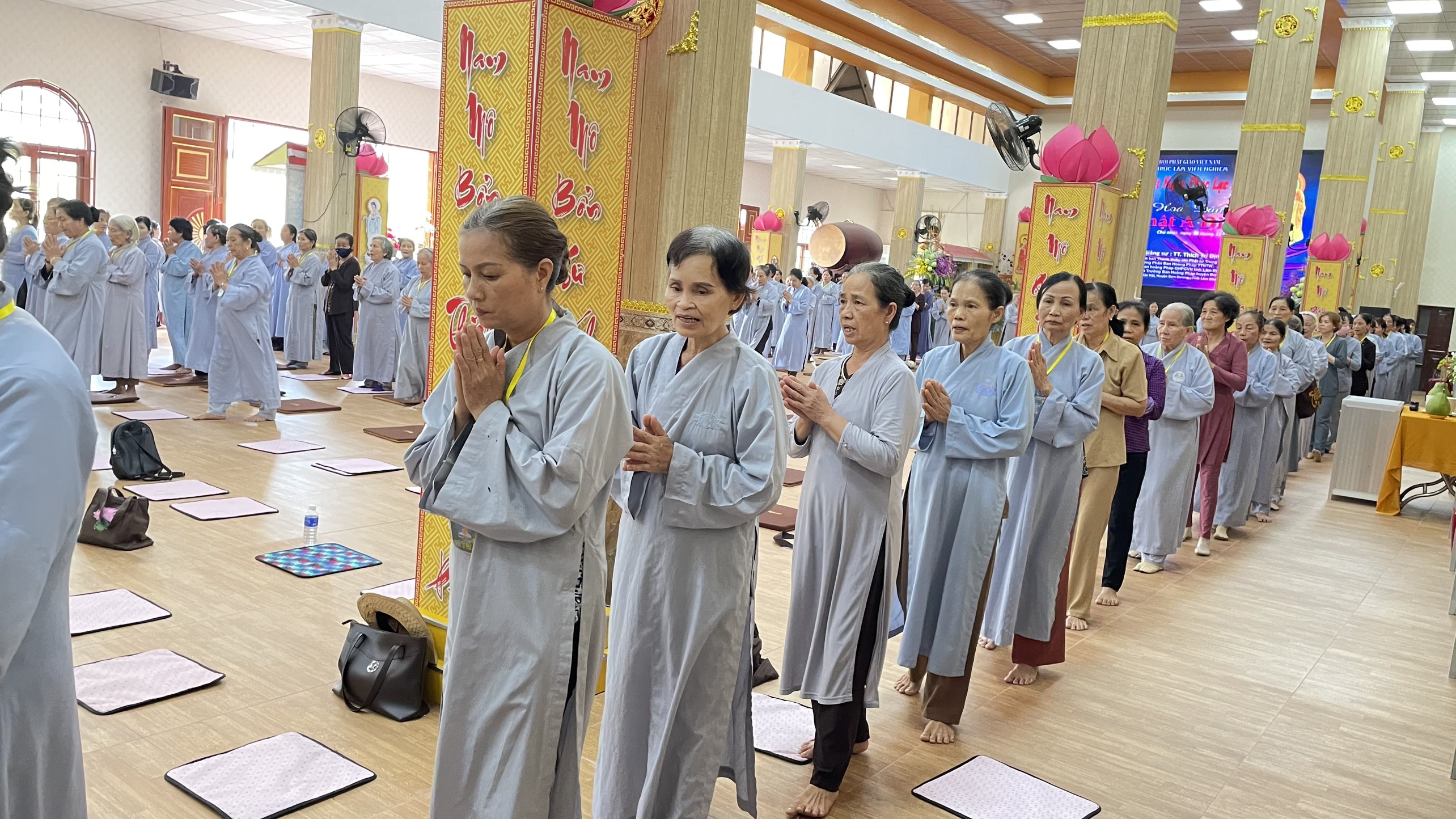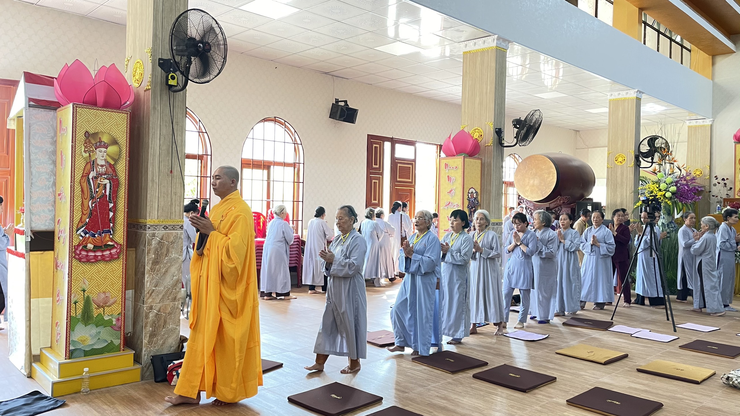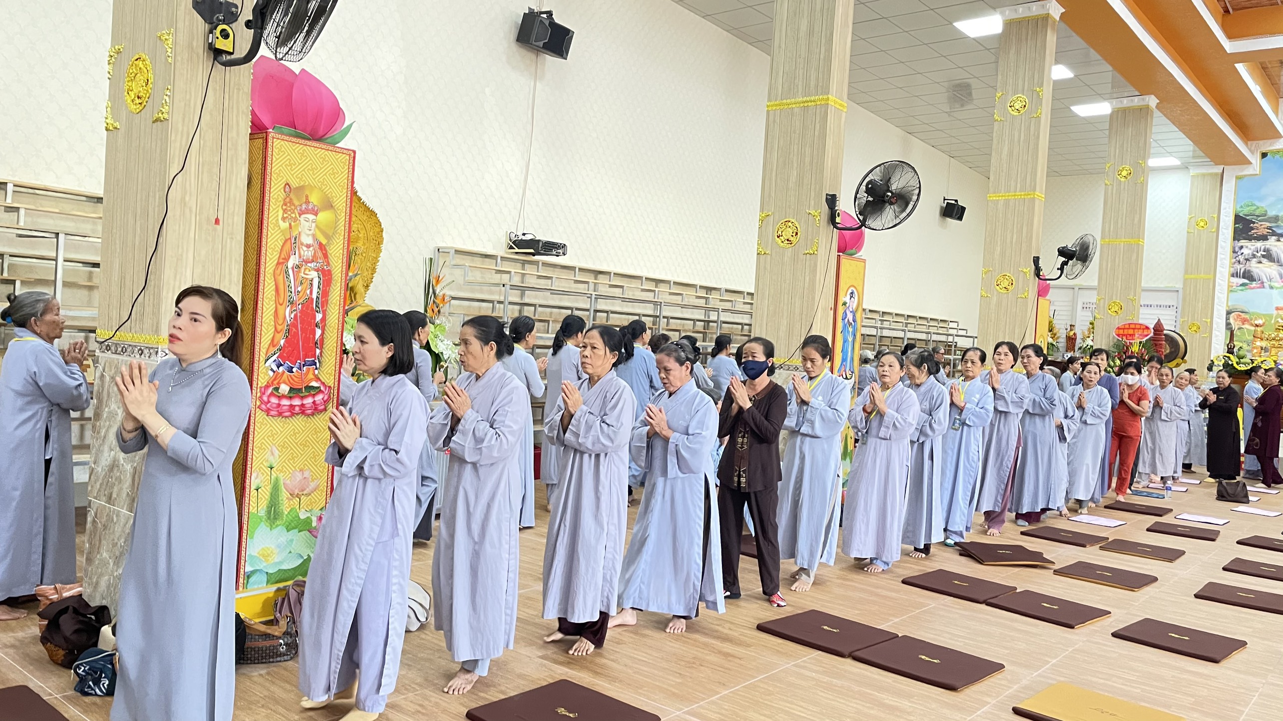 Khi ánh sáng mặt trời vừa chiếu xuống sân chùa thì thấp thoáng trong những tà áo lam mang màu giải thoát đã dần hiện hữu nơi ngôi chùa thân thương Trúc Lâm Viên Nghiêm. Quý Phật tử nhanh chóng vân tập nơi Chánh điện trang nghiêm, dưới sự hướng dẫn của Đại đức Thích Thiện Mỹ - Ủy viên Ban Kinh tế Tài chính TƯ GHPGVN, Phó trưởng Phân ban Thanh Thiếu nhi Phật tử TƯ GHPGVN, Trưởng ban TT-TT GHPGVN tỉnh Đồng Nai, Trụ trì chùa Trúc Lâm Viên Nghiêm; Đại đức Thích Minh Hiếu - Phó trụ trì chùa Trúc Lâm Viên Nghiêm cùng chư Tôn đức bổn tự bắt đầu nghi thức truyền Giới và lạy Phật. Qua đó, tự thân mỗi Phật tử được thêm một lần nhắc nhở bản thân tinh tấn trong quá trình tu tập cũng như trong đời sống hiện tại.