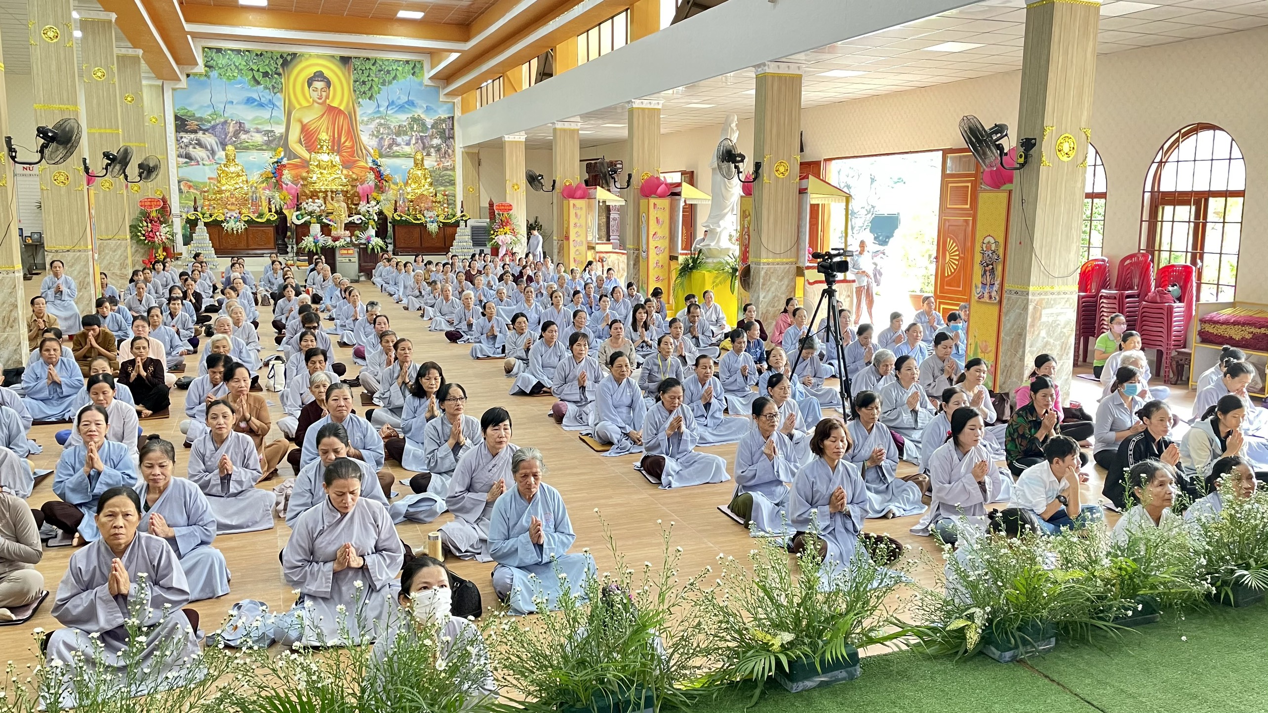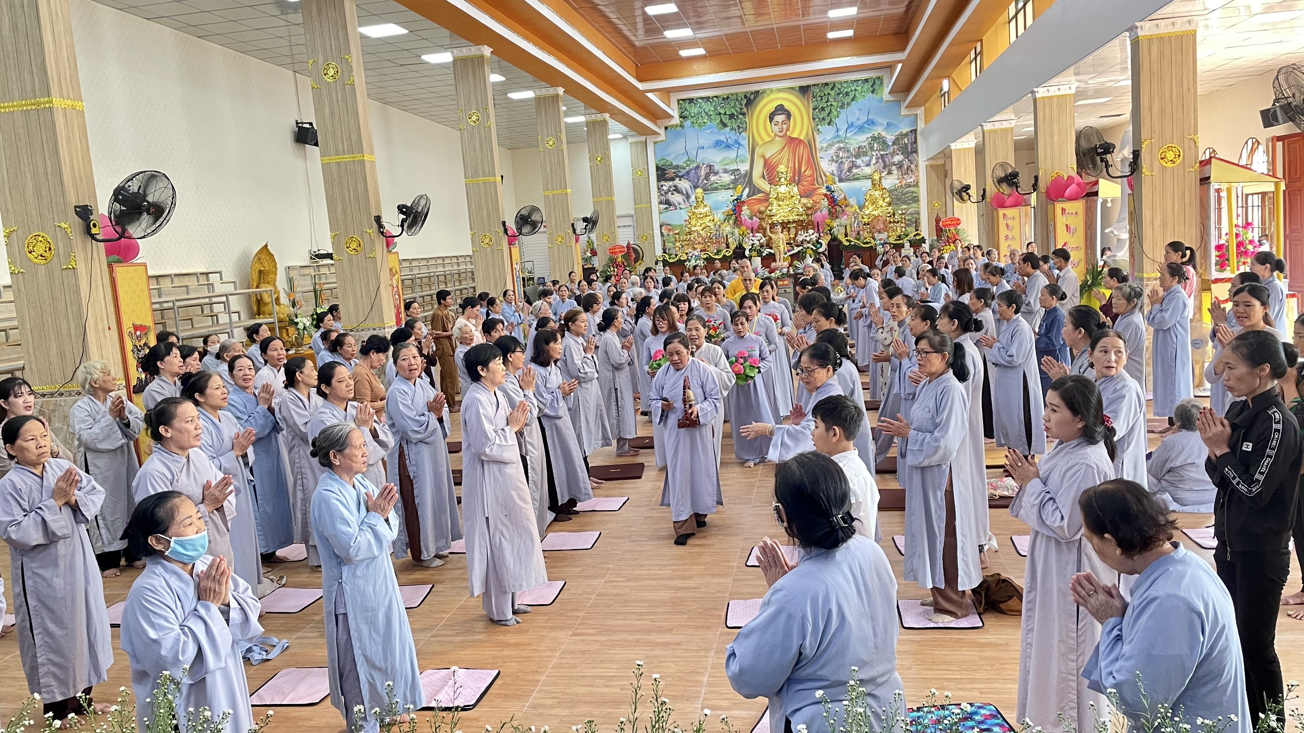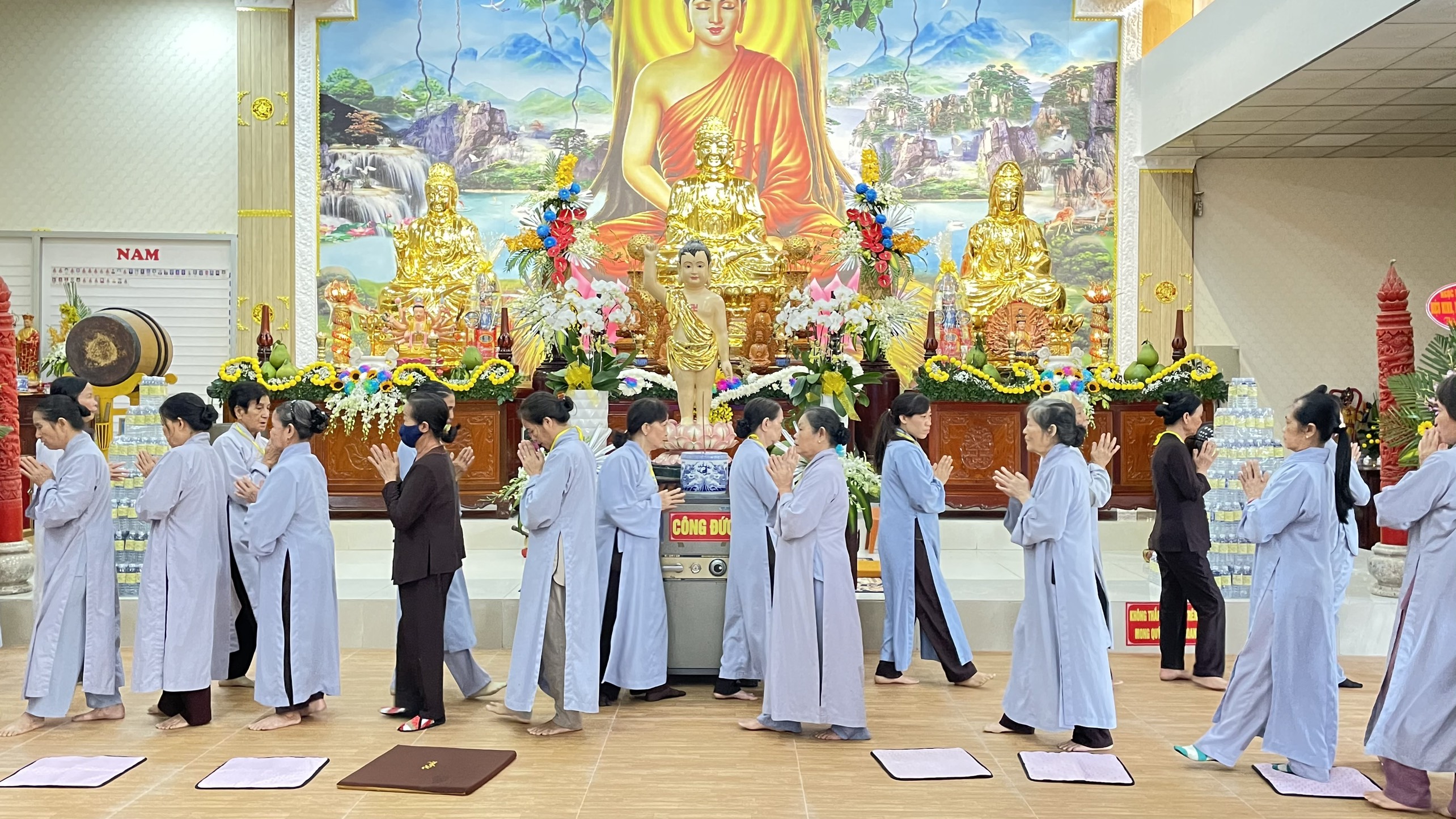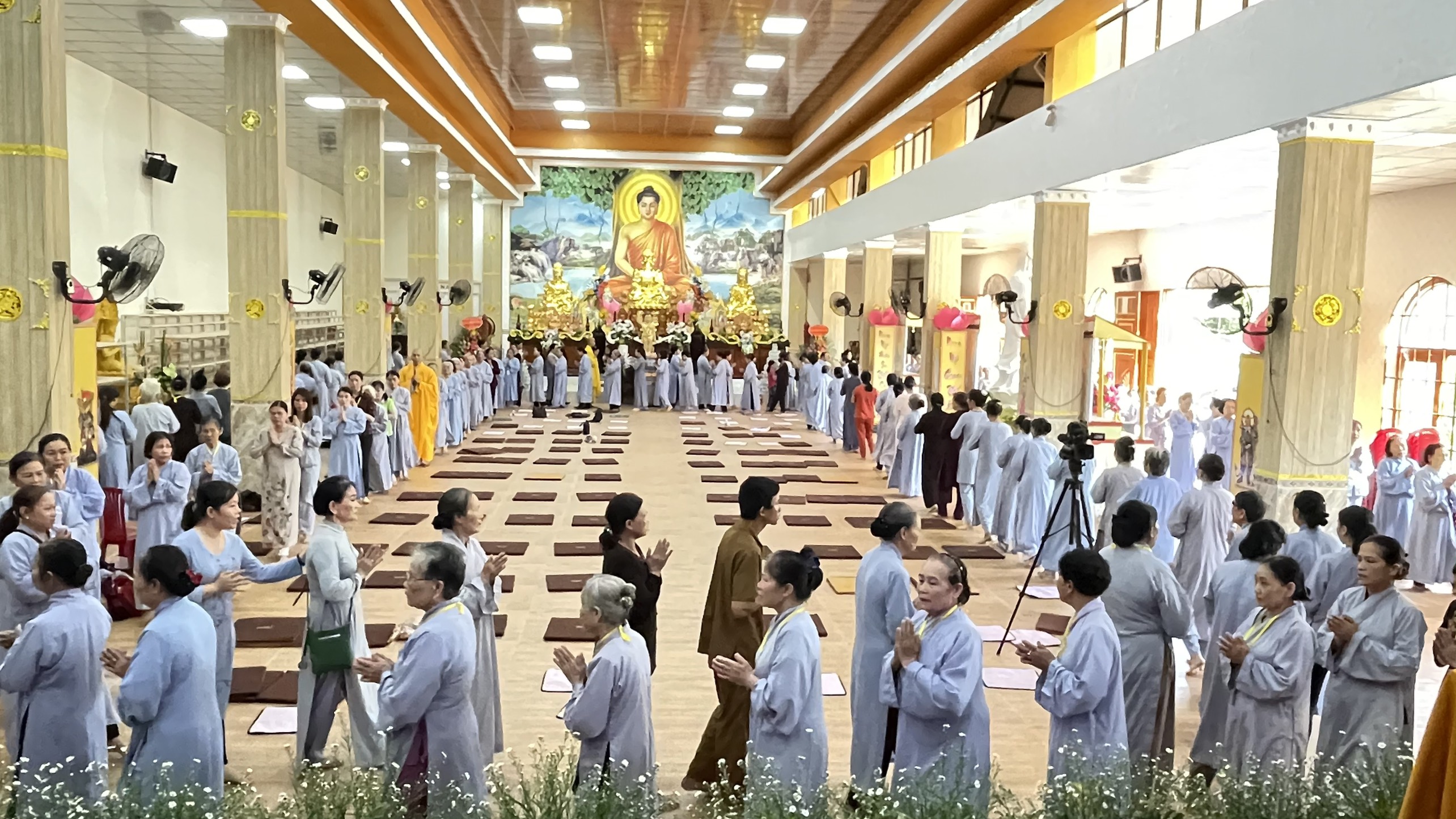 Khi ánh sáng mặt trời vừa chiếu xuống sân chùa thì thấp thoáng trong những tà áo lam mang màu giải thoát đã dần hiện hữu nơi ngôi chùa thân thương Trúc Lâm Viên Nghiêm. Quý Phật tử nhanh chóng vân tập nơi Chánh điện trang nghiêm, dưới sự hướng dẫn của Đại đức Thích Thiện Mỹ - Ủy viên Ban Kinh tế Tài chính TƯ GHPGVN, Phó trưởng Phân ban Thanh Thiếu nhi Phật tử TƯ GHPGVN, Trưởng ban TT-TT GHPGVN tỉnh Đồng Nai, Trụ trì chùa Trúc Lâm Viên Nghiêm; Đại đức Thích Minh Hiếu - Phó trụ trì chùa Trúc Lâm Viên Nghiêm cùng chư Tôn đức bổn tự bắt đầu nghi thức truyền Giới và lạy Phật. Qua đó, tự thân mỗi Phật tử được thêm một lần nhắc nhở bản thân tinh tấn trong quá trình tu tập cũng như trong đời sống hiện tại.