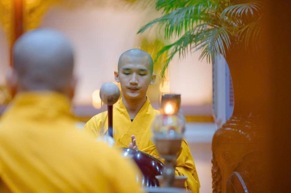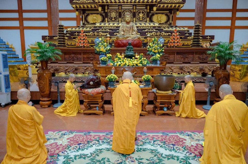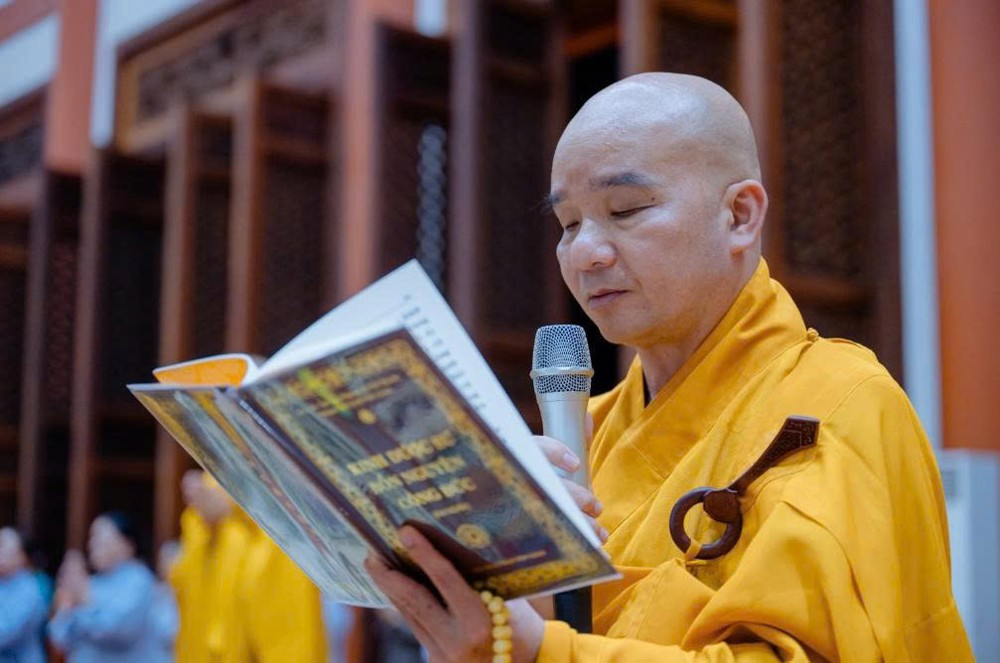 Dưới sự hướng dẫn của chư Tăng, lời Kinh Dược Sư được đồng tụng trang nghiêm, ngân vang trong không gian chánh điện, hòa cùng tiếng mõ, tiếng chuông, dẫn khởi niềm chí thành, chí kính của đại chúng quy hướng về Đức Phật với tất cả lòng tin và tâm nguyện thanh tịnh.