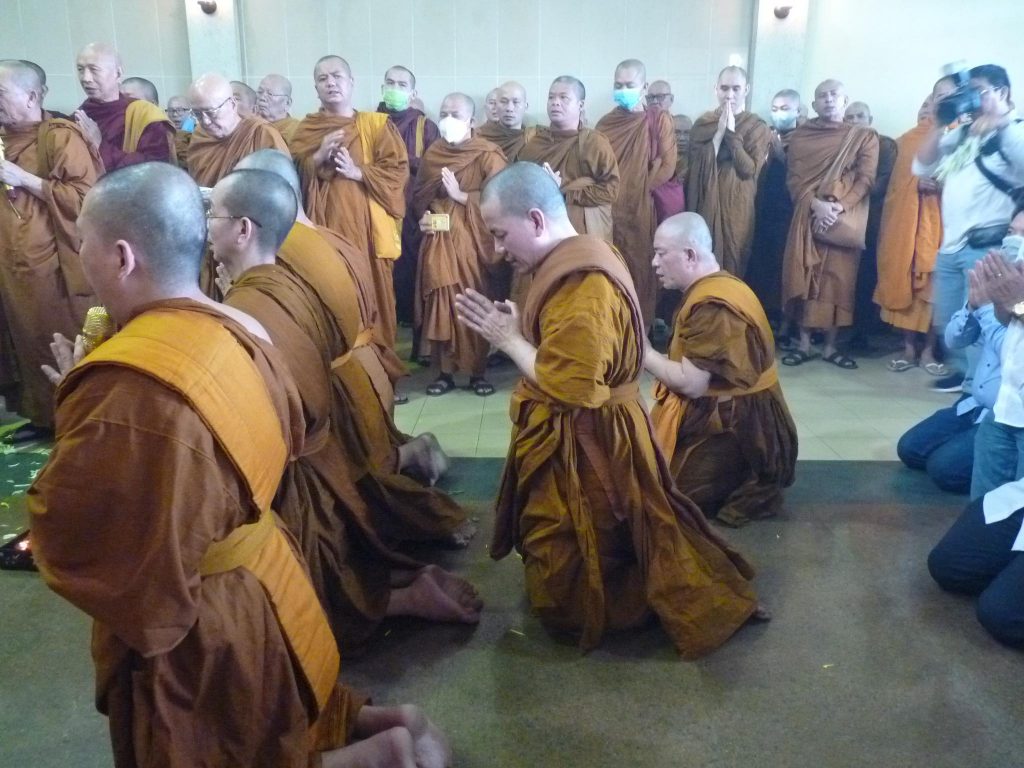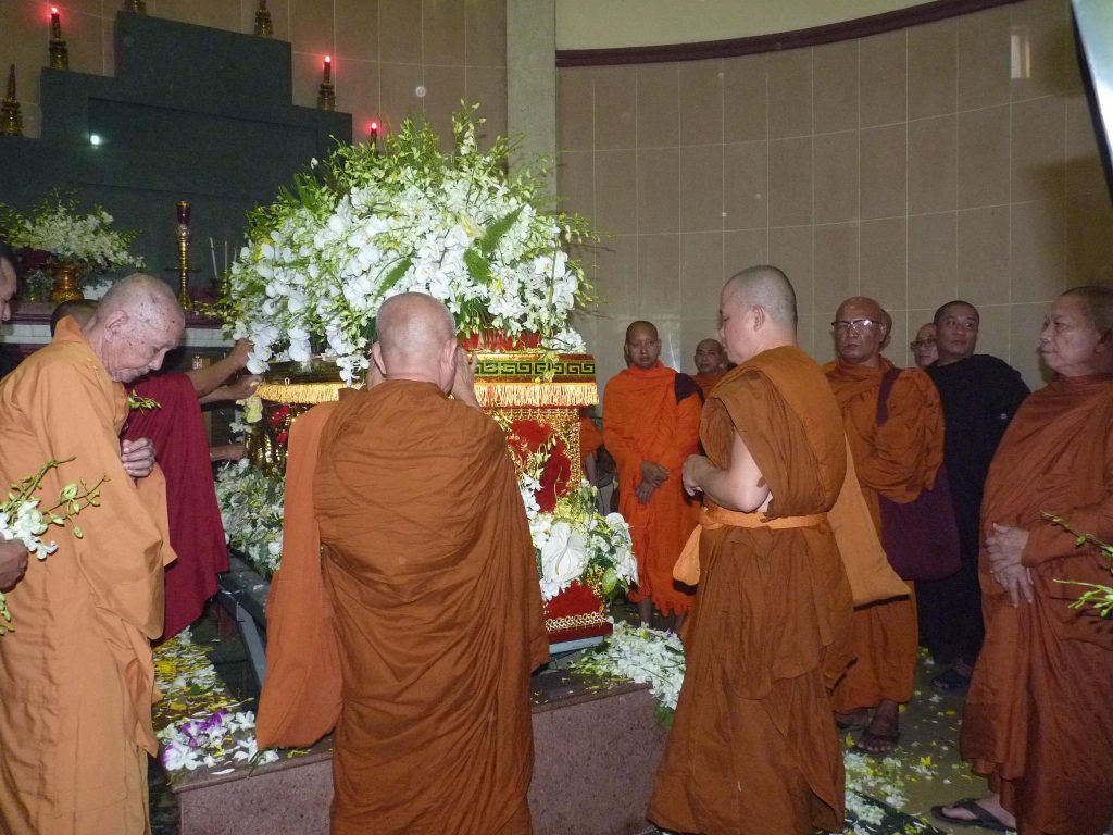 Sau thời thuyết pháp là lễ đặt bát đến chư Tăng và cúng dường ngọ trưa.