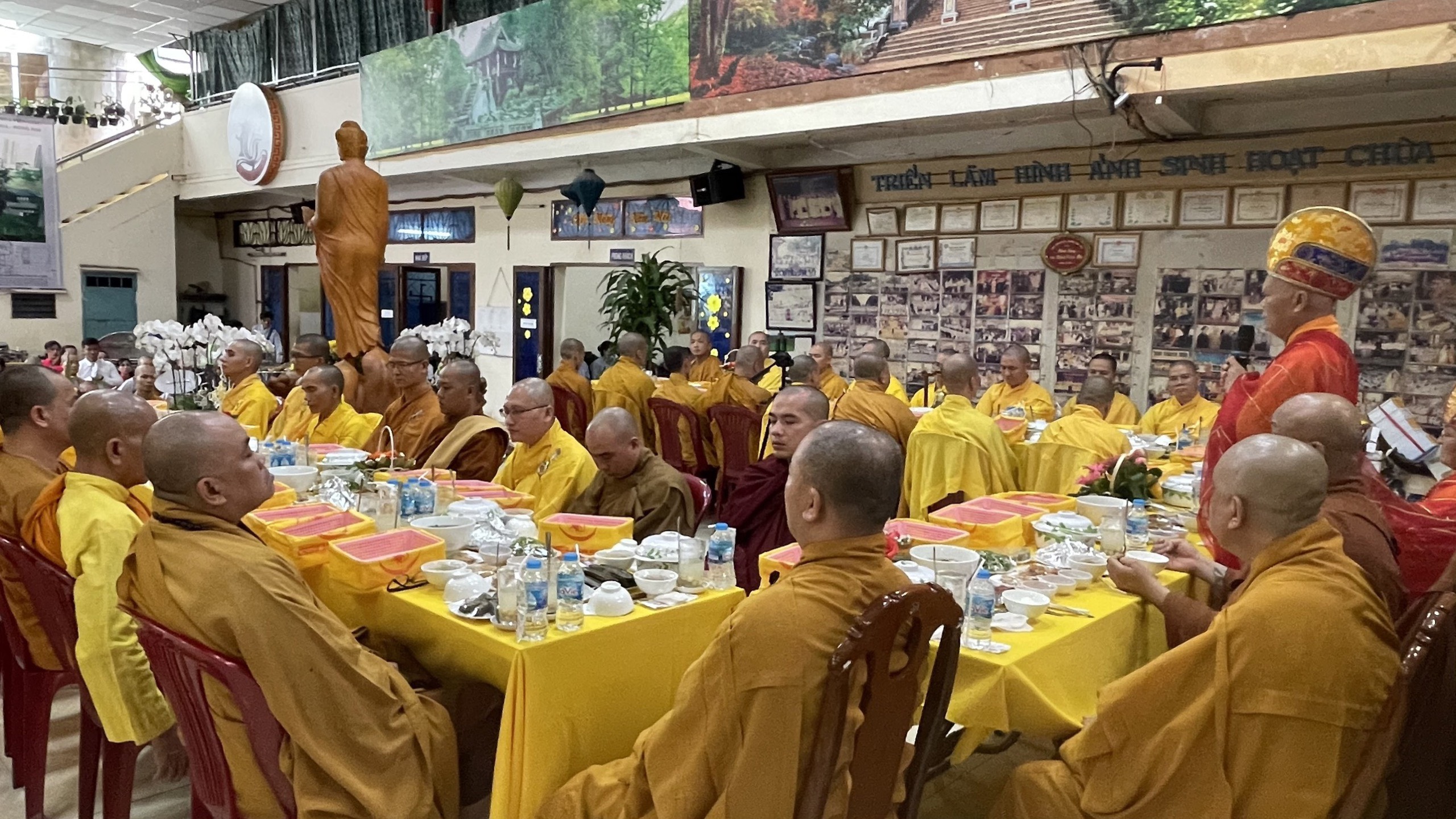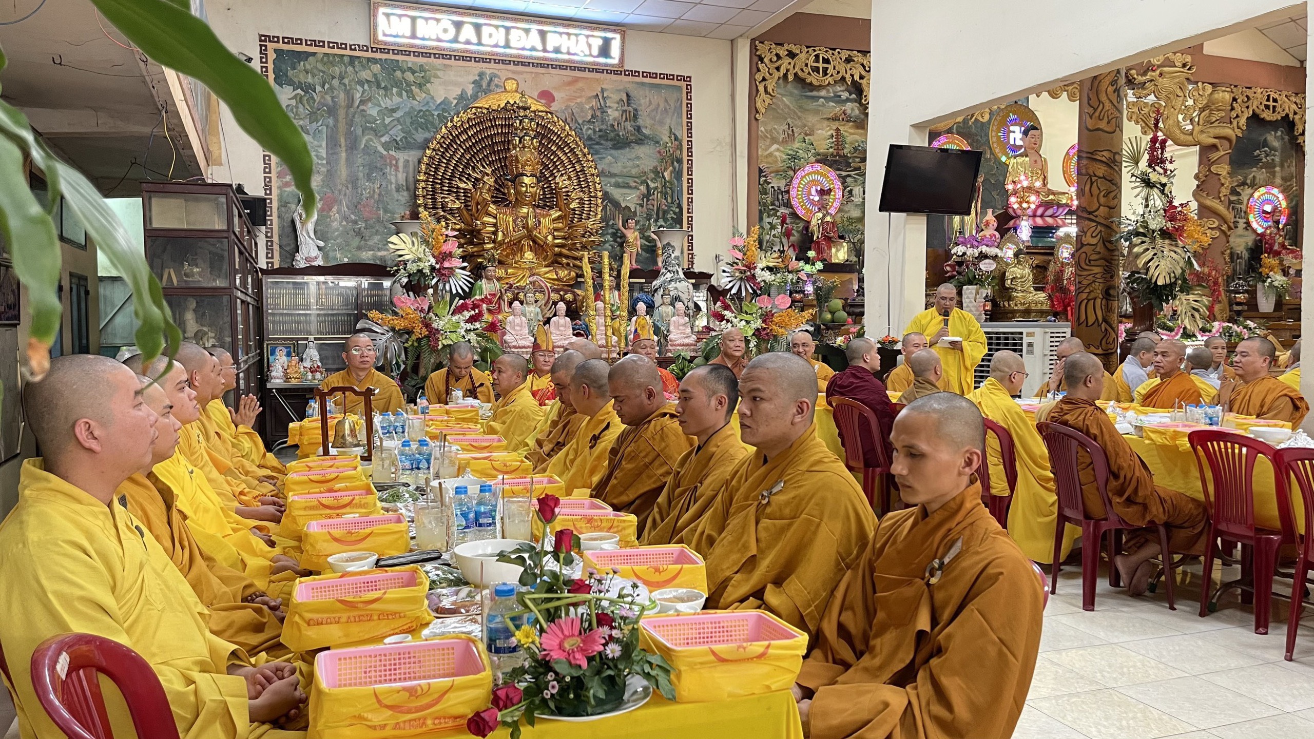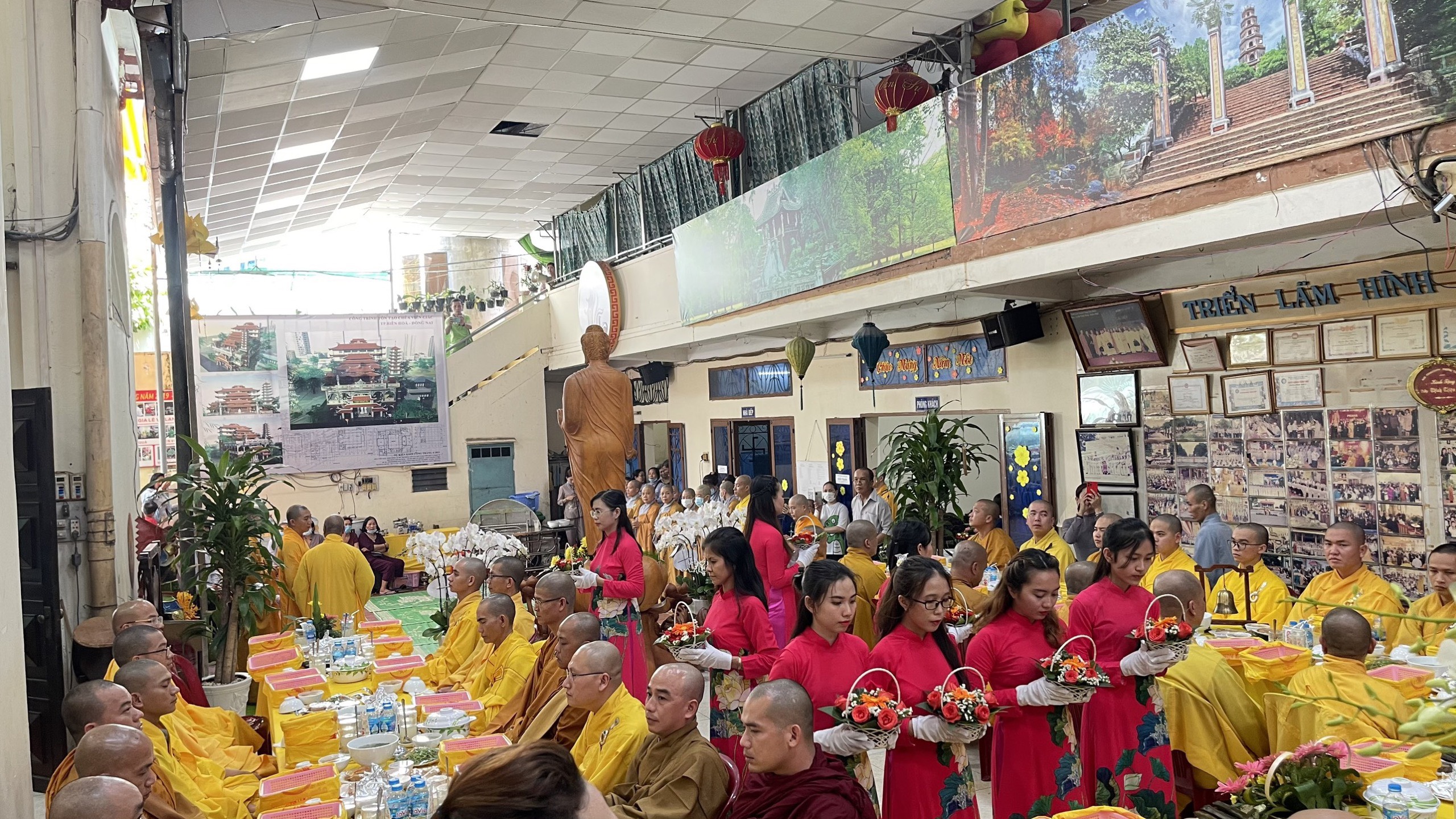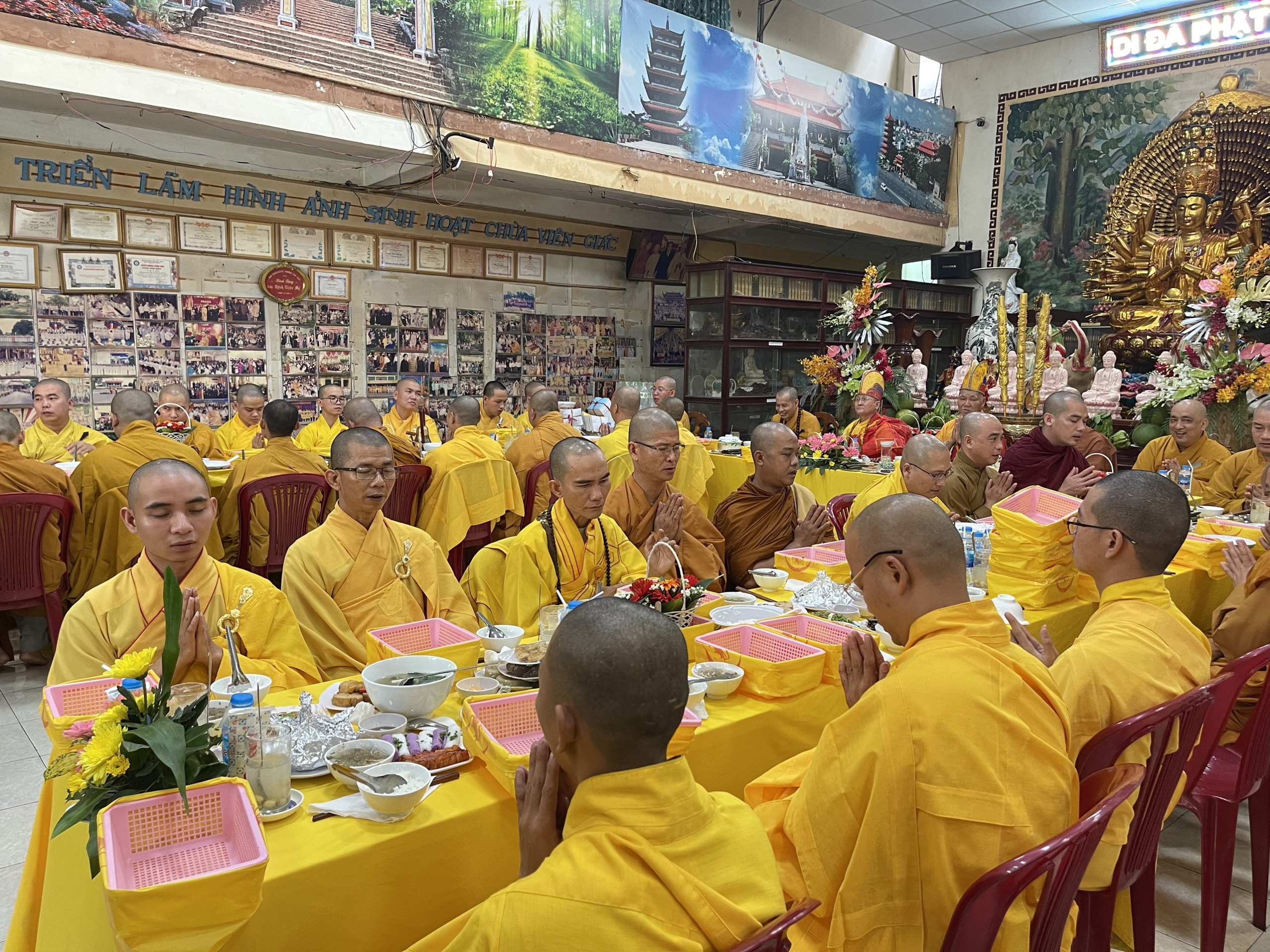 Sau nghi thức tưởng niệm, chư Tôn đức Tăng Ni cùng các phái đoàn, hội chúng Phật tử từ TP.HCM, Đồng Nai, Bình Dương, Vũng Tàu, Hà Nội,… đến dâng hương đảnh lễ cố Thượng tọa thượng Thiện hạ Tráng là nghi thức cúng dường trai tăng. Nguyện đem công đức phước báu hồi hướng cho hết thảy chúng sinh luôn an vui trong ánh sáng từ quang của chư Phật và hồi hướng cho Phật sự trùng tu ngôi Tổ đình Viên Giác được thành tựu viên mãn.
