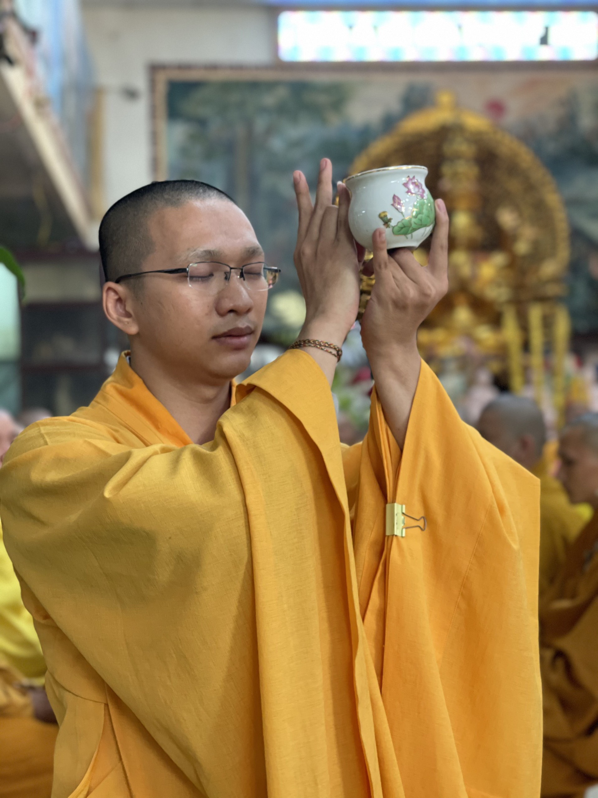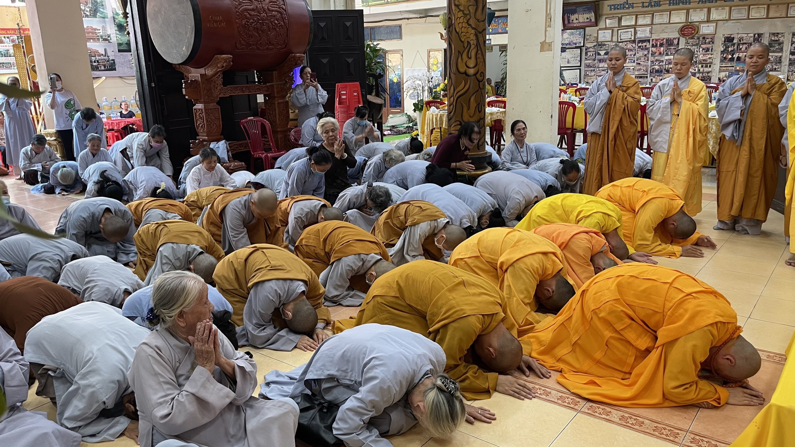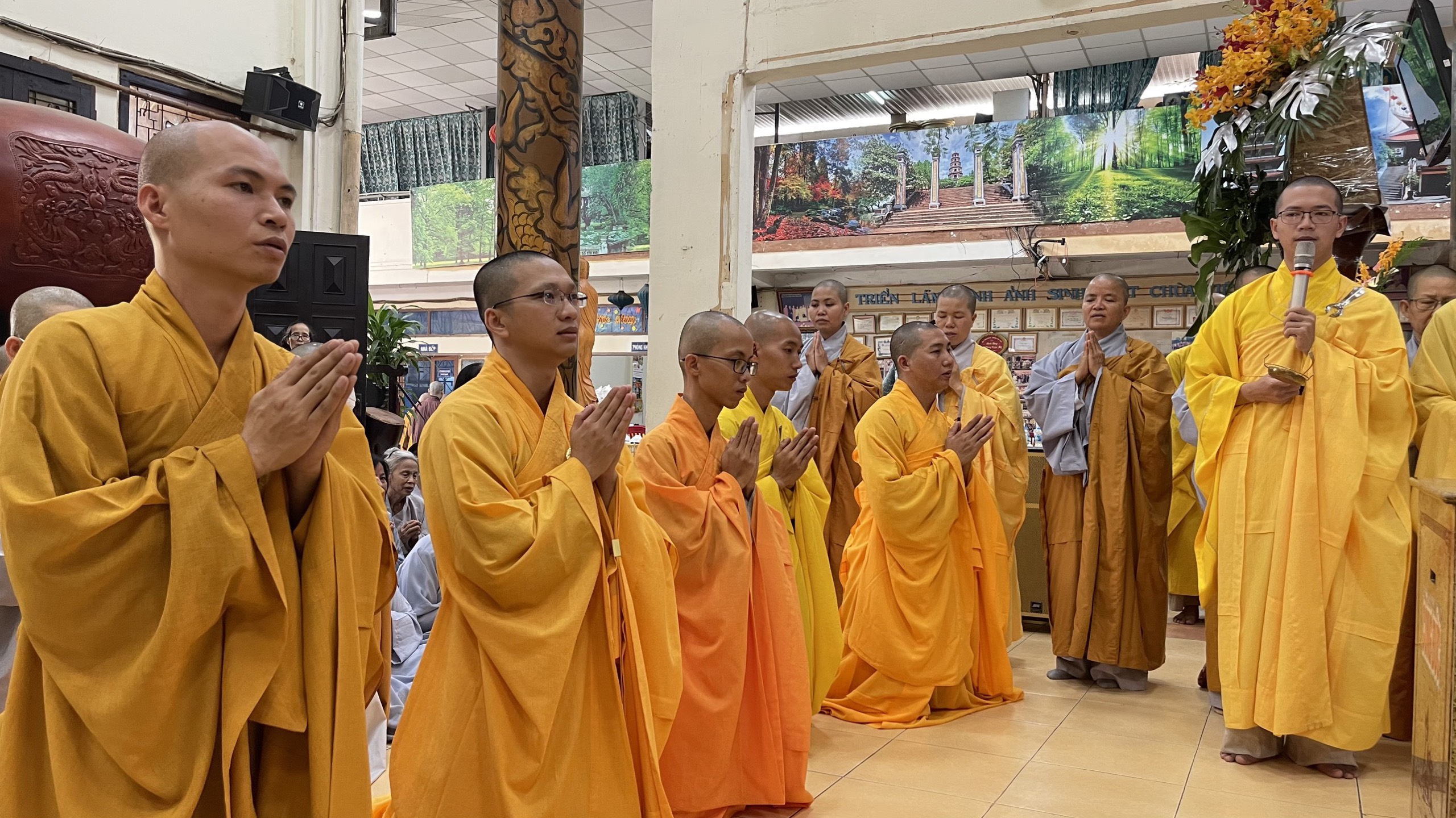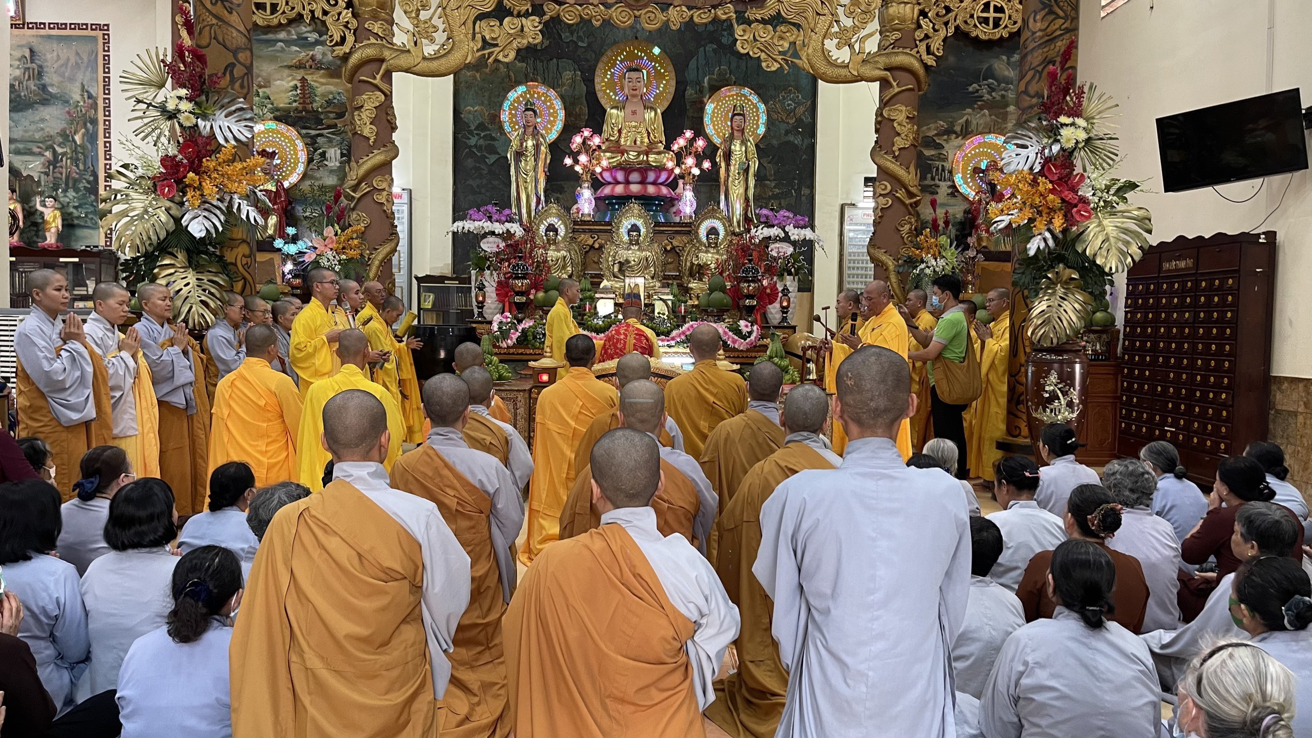 Sau nghi thức tưởng niệm, chư Tôn đức Tăng Ni cùng các phái đoàn, hội chúng Phật tử từ TP.HCM, Đồng Nai, Bình Dương, Vũng Tàu, Hà Nội,… đến dâng hương đảnh lễ cố Thượng tọa thượng Thiện hạ Tráng là nghi thức cúng dường trai tăng. Nguyện đem công đức phước báu hồi hướng cho hết thảy chúng sinh luôn an vui trong ánh sáng từ quang của chư Phật và hồi hướng cho Phật sự trùng tu ngôi Tổ đình Viên Giác được thành tựu viên mãn.