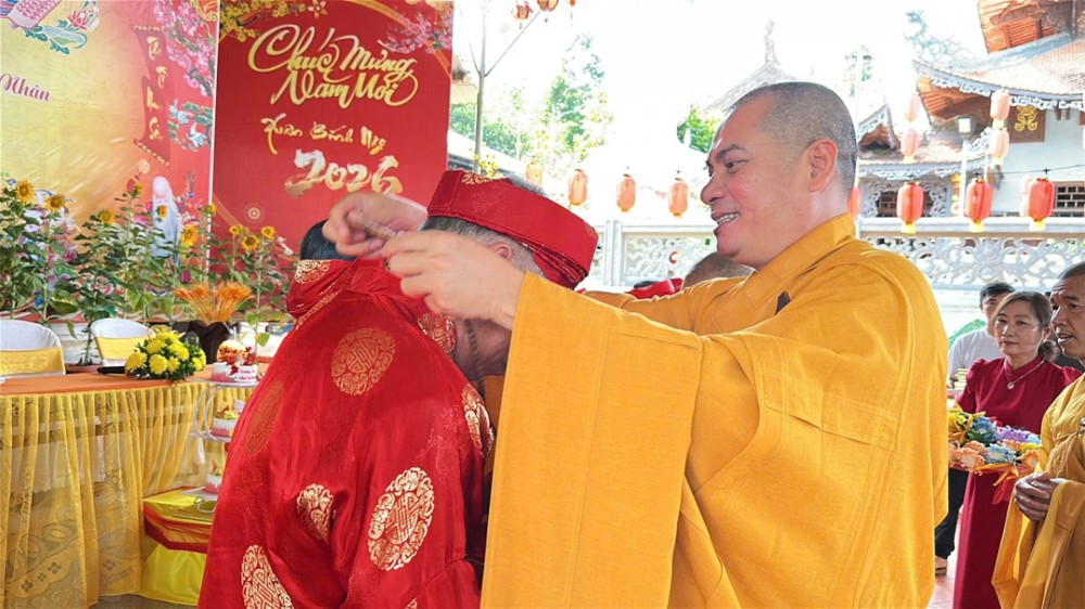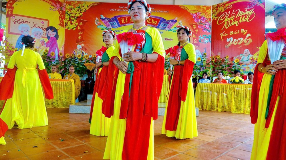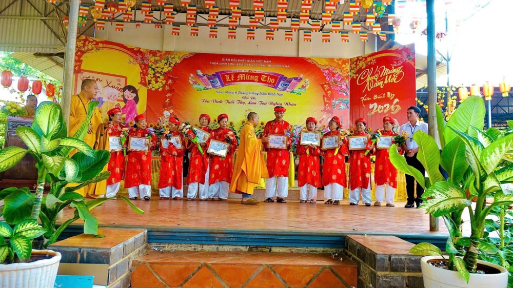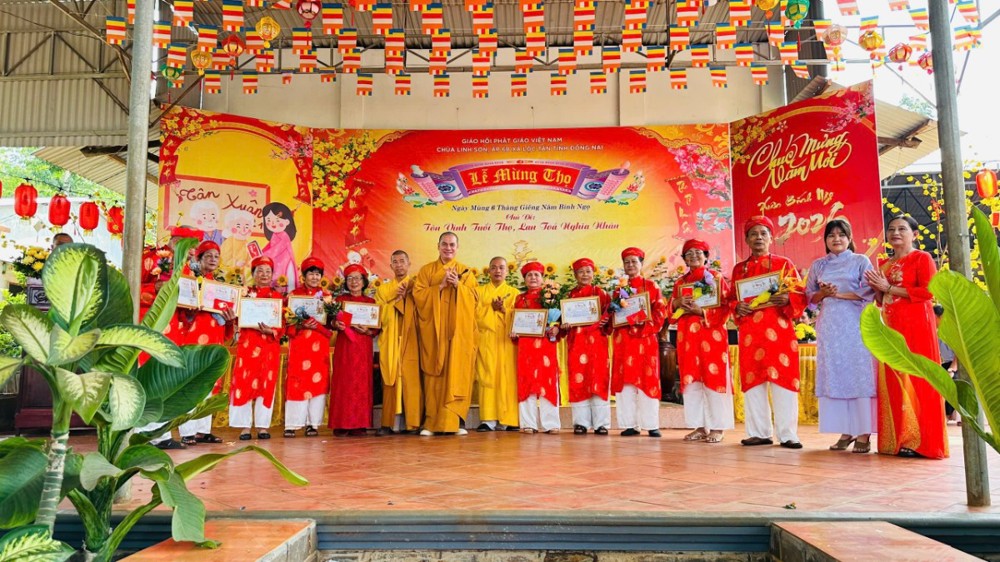 PSO – Trong không khí trang nghiêm và ấm áp những ngày đầu xuân, sáng ngày 22/2/2026 (nhằm mùng 6 tháng Giêng năm Bính Ngọ), tại chùa Linh Sơn (Làng 6), xã Lộc Tấn, Đại đức Thích Nguyên Tín – Phó Trụ trì chùa Linh Sơn – đã phối hợp cùng chính quyền địa phương long trọng tổ chức Lễ mừng thọ cho gần 100 cụ lão trên địa bàn xã. Buổi lễ diễn ra dưới sự chỉ dạy của Đại đức Thích Bửu Hòa – Phó Chánh Thư ký Ban Trị sự Giáo hội Phật giáo Việt Nam tỉnh Đồng Nai, Trụ trì chùa Giác Quang và chùa Linh Sơn (Làng 6).