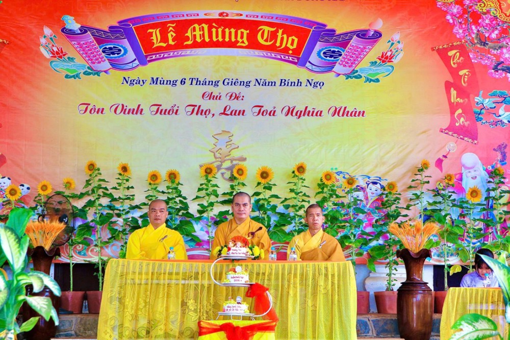 Ban đạo từ tại buổi lễ, Đại đức Thích Bửu Hòa nhấn mạnh ý nghĩa thiêng liêng của việc mừng thọ theo tinh thần Phật giáo. Đại đức khẳng định người cao tuổi là nền tảng đạo đức của gia đình, là cội nguồn nếp nhà, giữ gìn gia phong và truyền trao đạo lý làm người cho con cháu. Sự hiện diện của các cụ là phước báu lớn lao giúp gia đình hòa thuận, biết trên kính dưới nhường và là bài học sống động về nhân nghĩa, hiếu đạo và lòng bao dung. Không chỉ vậy, người cao tuổi còn là kho tàng kinh nghiệm quý báu của xã hội, hội tụ trí tuệ, sự từng trải và tầm nhìn sâu rộng.
