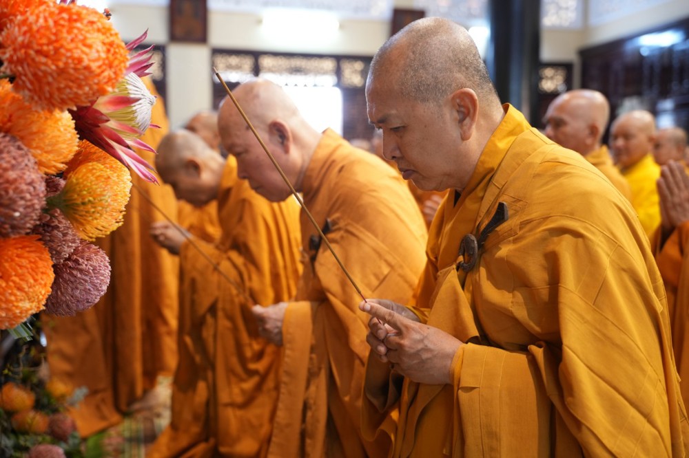 Quang lâm Tổ đường tác lễ có HT. Thích Nhật Quang, Ủy viên Thường trực HĐCM, Trưởng ban Quản trị, Trụ trì Tổ đình Thiền viện Thường Chiếu; chư tôn thiền đức thành viên Ban Quản trị TPTLVN cùng đông đảo Tăng Ni và đạo tràng Phật tử các nơi trở về tham dự.