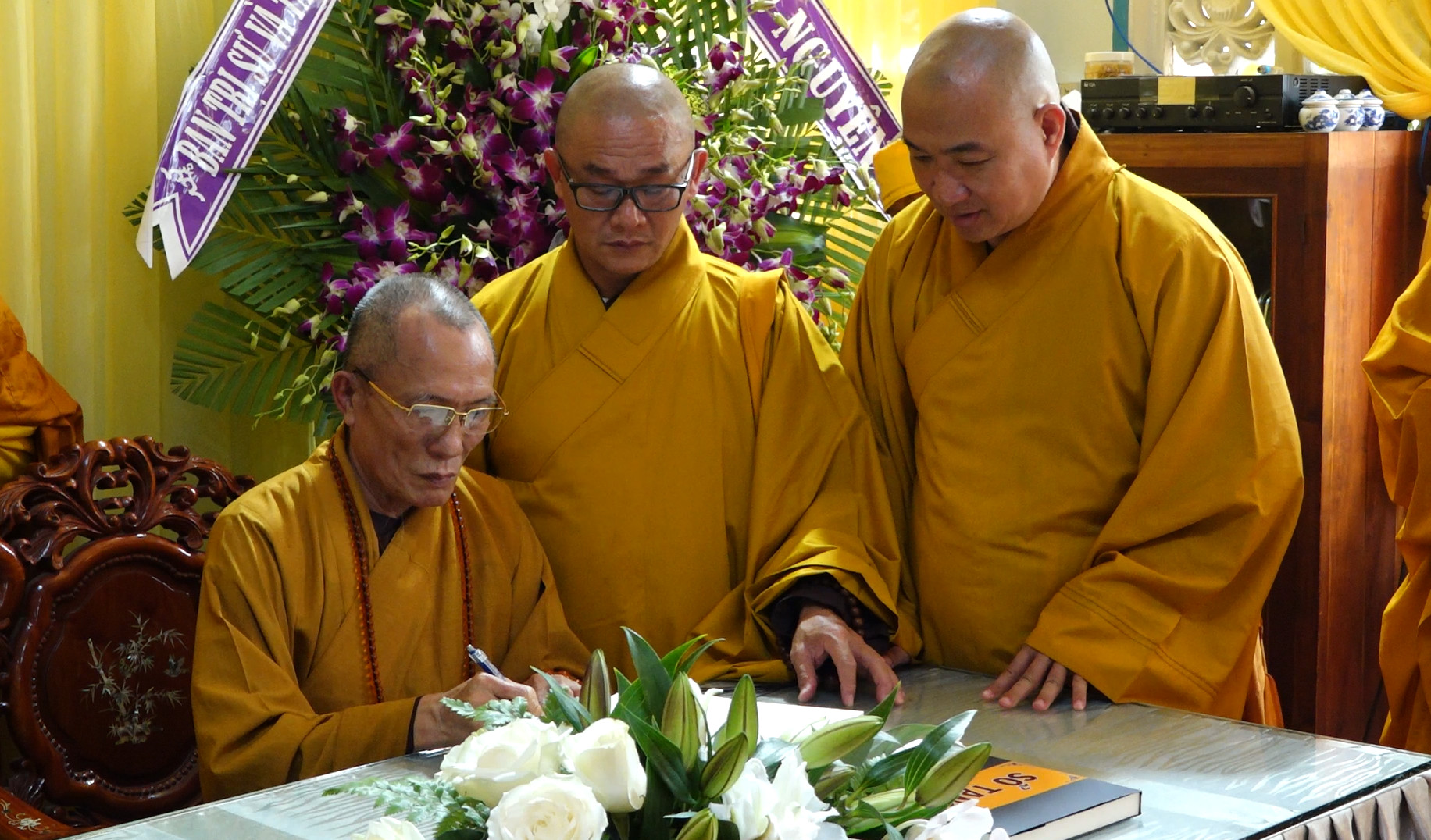 Sau khi cầu nguyện, chư Tôn đức Giáo phẩm lãnh đạo giáo hội đã lưu lại đôi dòng tưởng niệm, tri ân công đức của cố Ni trưởng và phân ưu cùng môn đồ pháp quyến.