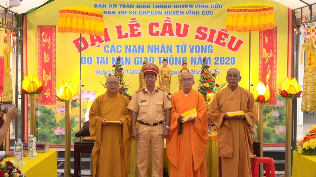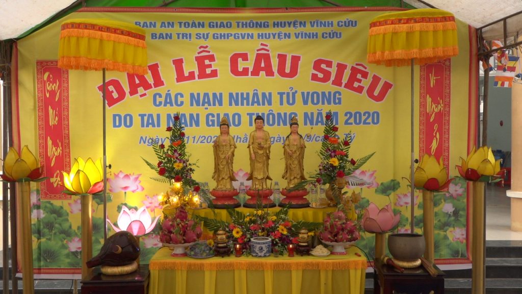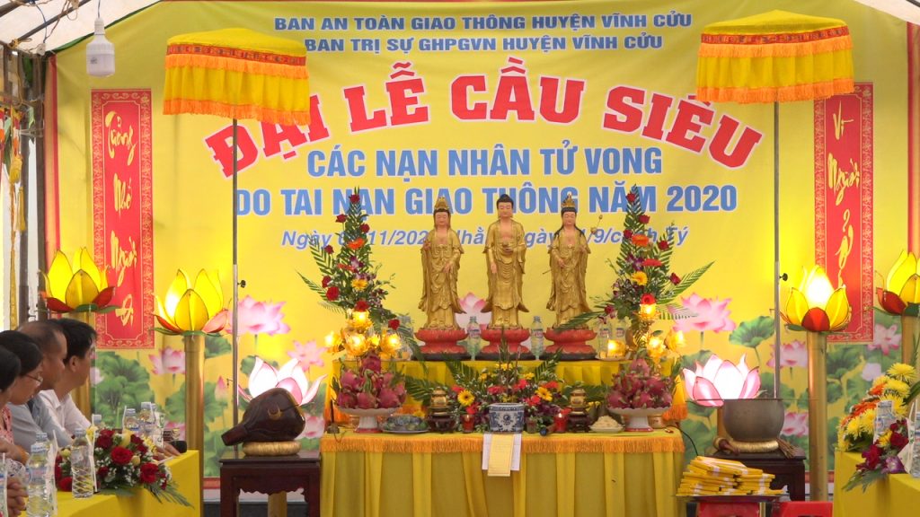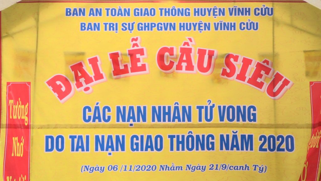 PSO - Chiều ngày 06/11/2020 Ban An toàn Giao thông huyện Vĩnh Cửu kết hợp với Ban Trị sự GHPGVN huyện tổ chức lễ Cầu siêu cho các nạn nhân tử vong do tai nạn giao thông năm 2020, tại nhà Văn hóa xã Vĩnh Tân, huyện Vĩnh Cửu, tỉnh Đồng Nai.