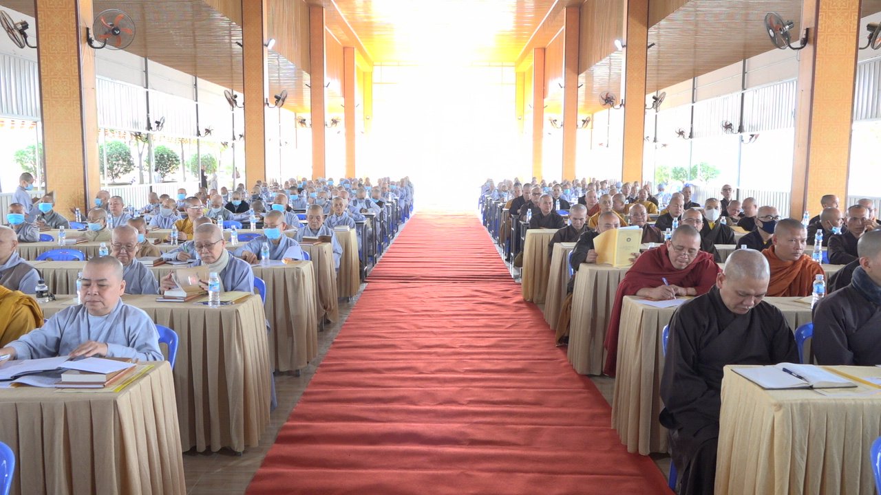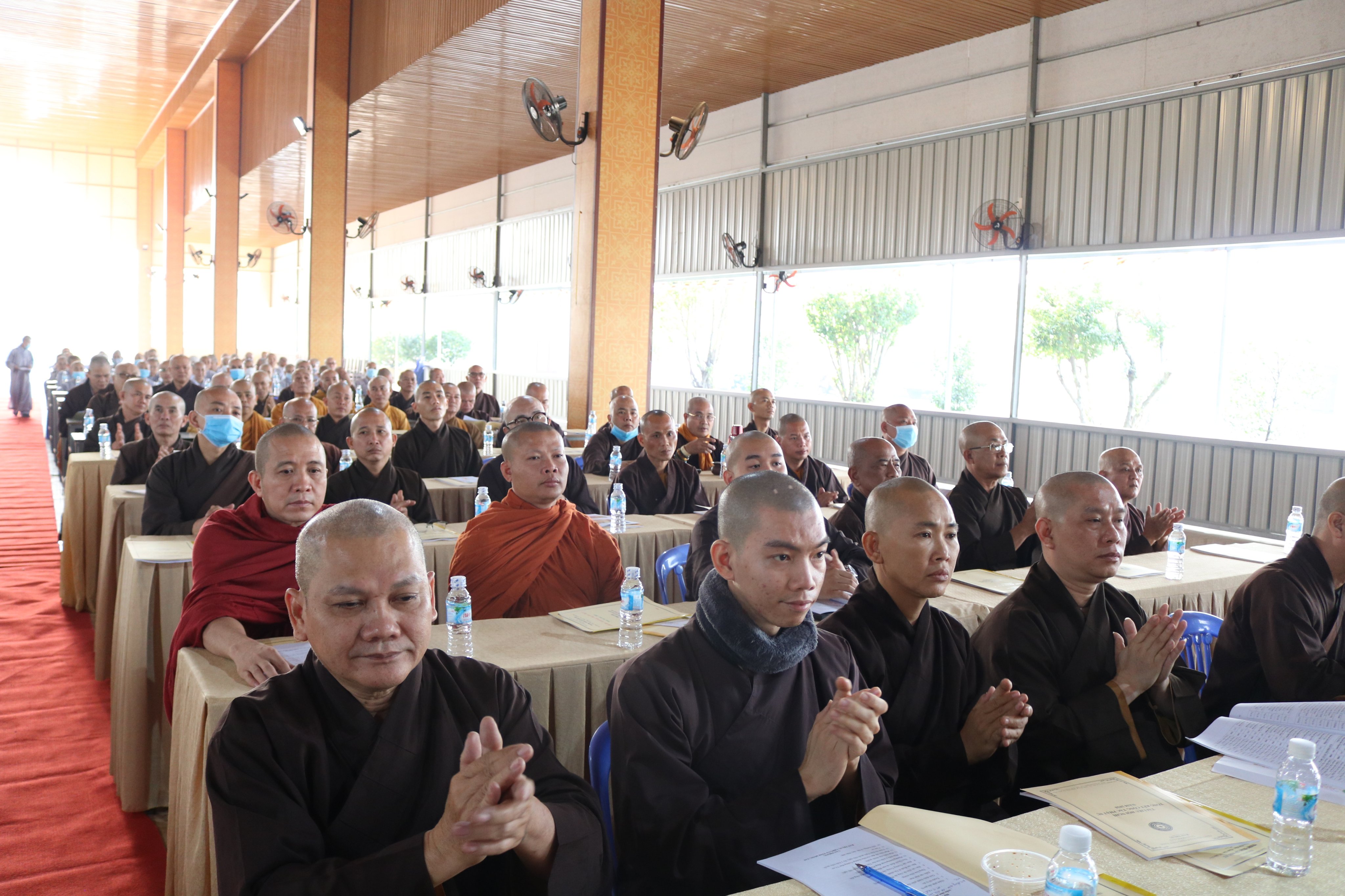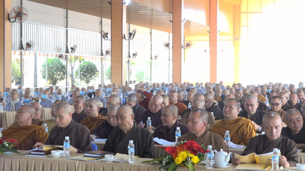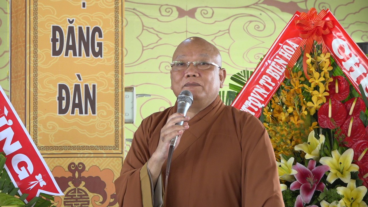 Sau phần chào cờ, chư Tôn đức và quý quan khách đã vân tập vào hội trường nơi diễn ra Hội nghị tổng kết công tác Phật sự năm 2020. TT.Thích Huệ Khai – UV HĐTS, Phó ban Thường trực BTS GHPGVN tỉnh Đồng Nai đã phát biểu chính thức khai mạc chương trình Hội nghị sáng hôm nay.
